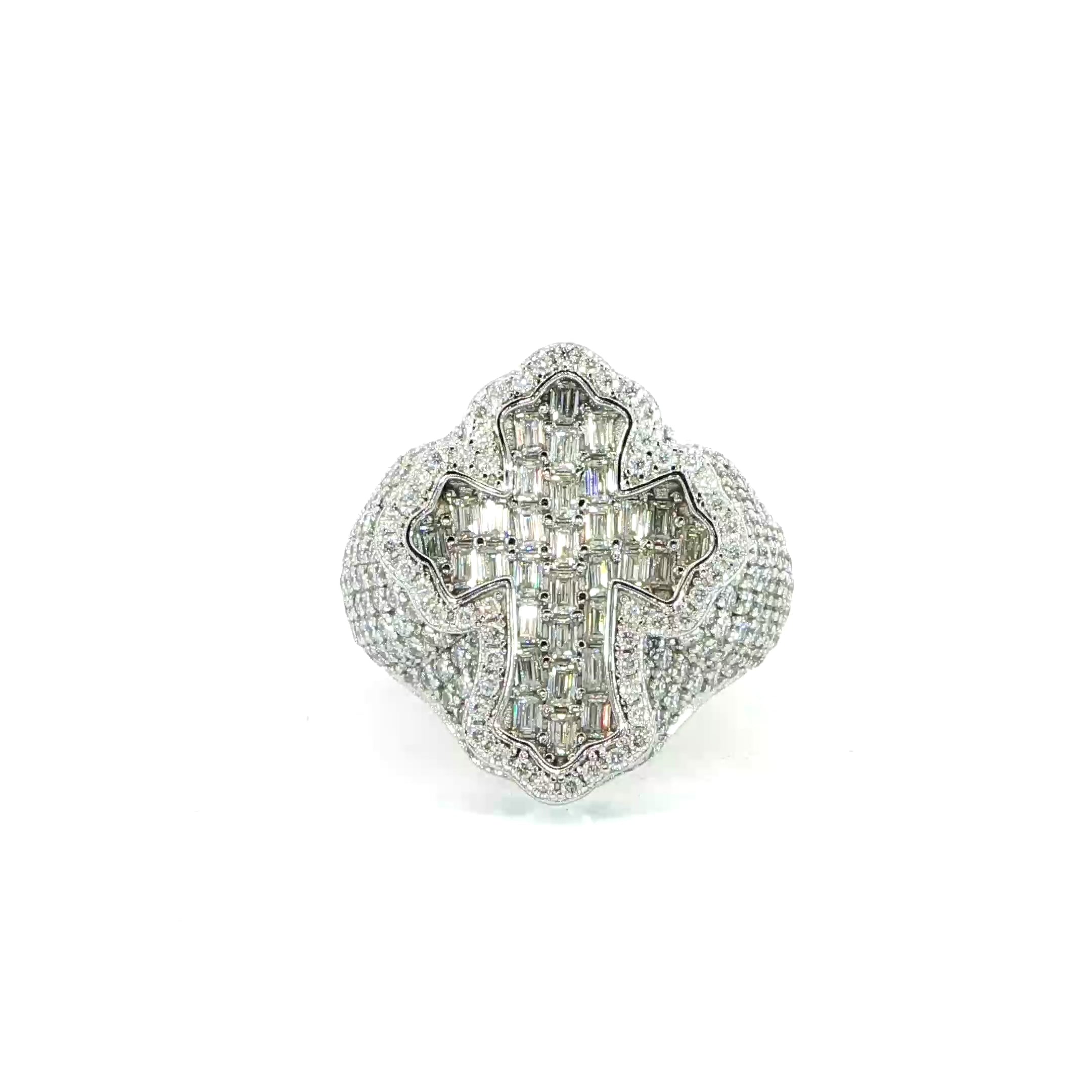 Sterling Silver Crucifix Ring with VVS Moissanite Stones