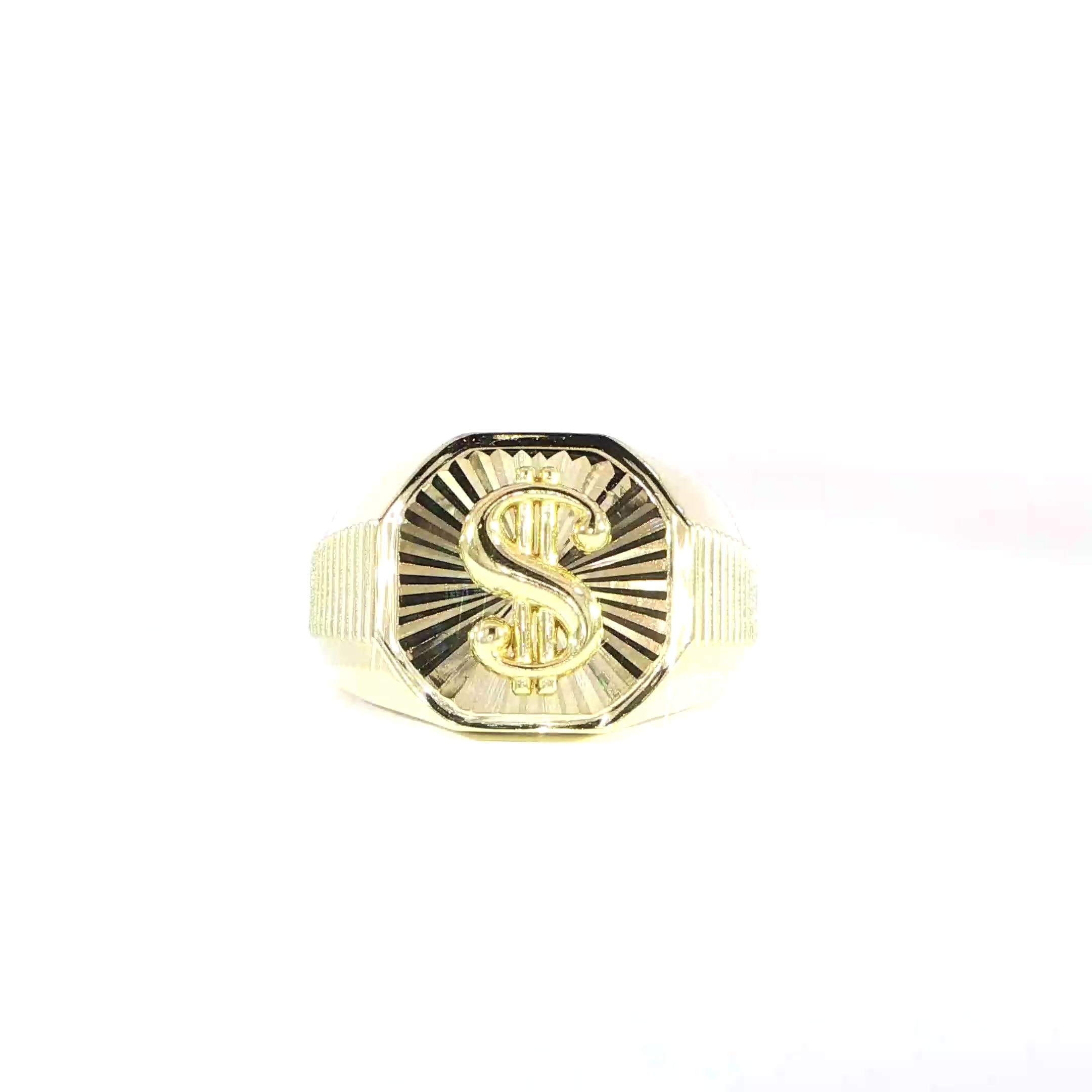 14K Yellow Gold Dollar Sign Ring – 10.5mm