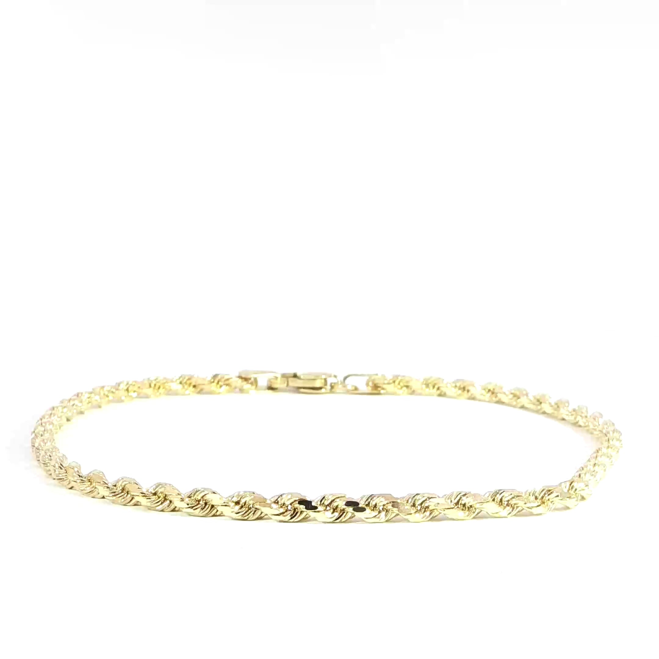 14K Yellow Gold Solid Rope Bracelet - 2.7MM
