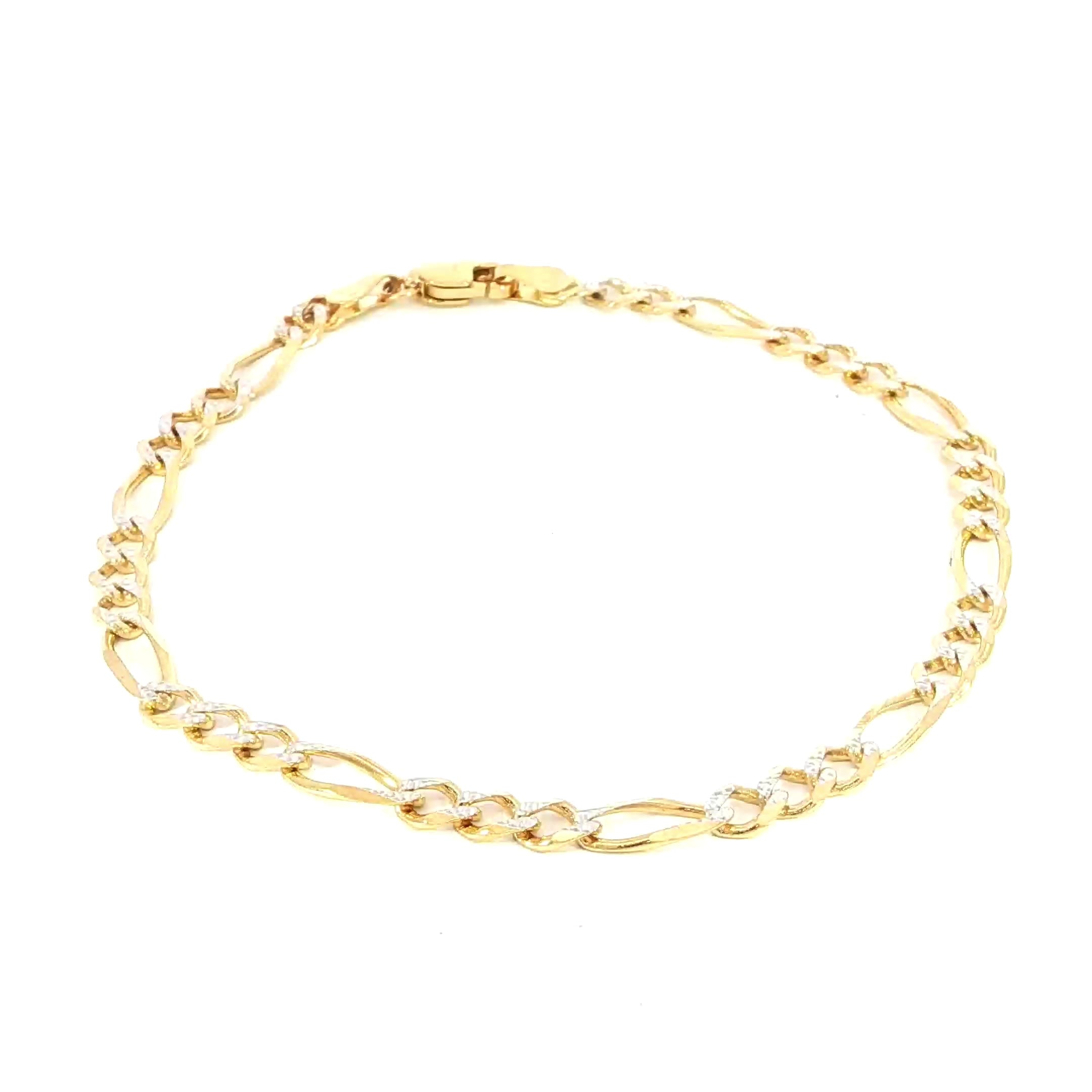 14K Yellow Gold Diamond Cut Figaro Bracelet - 4.5MM