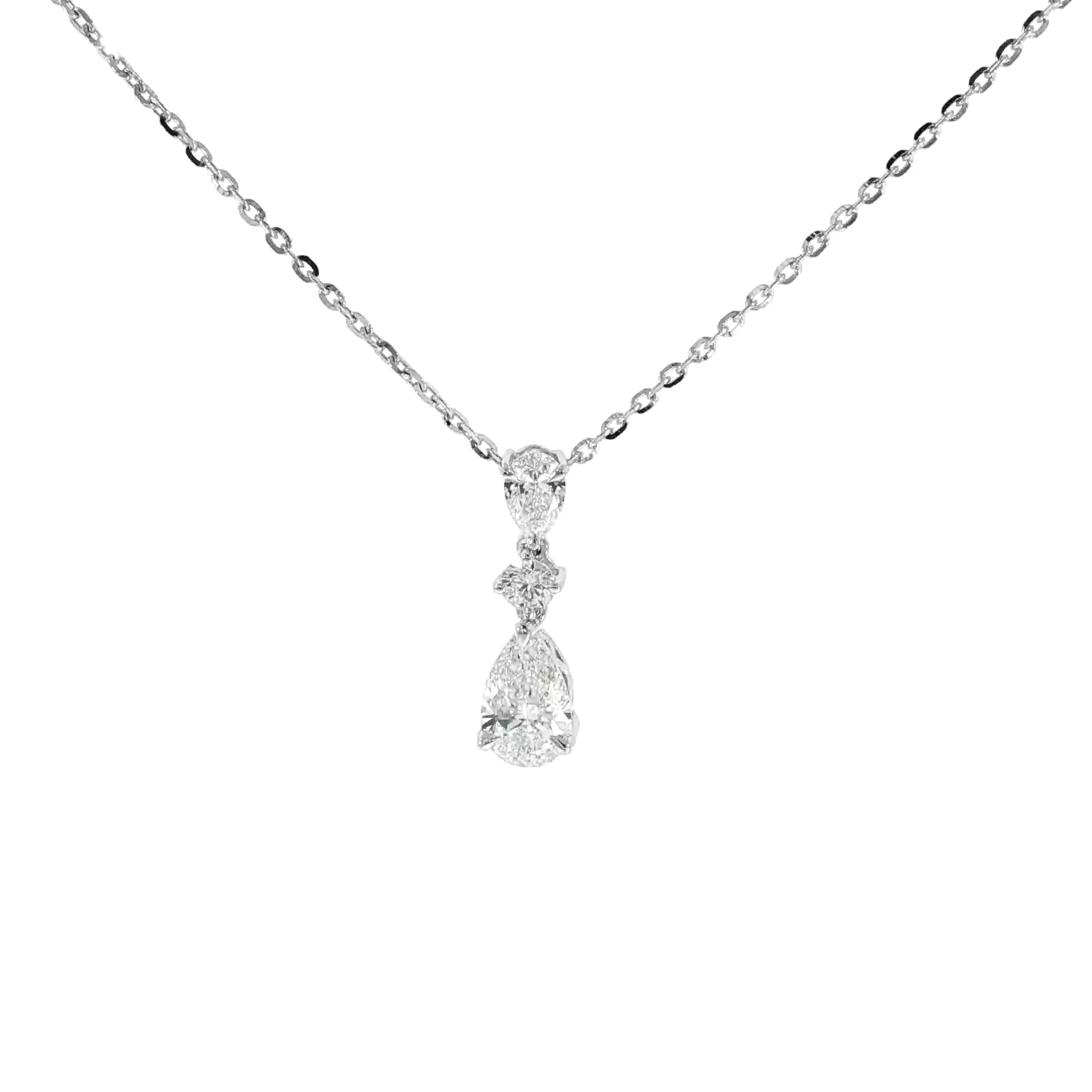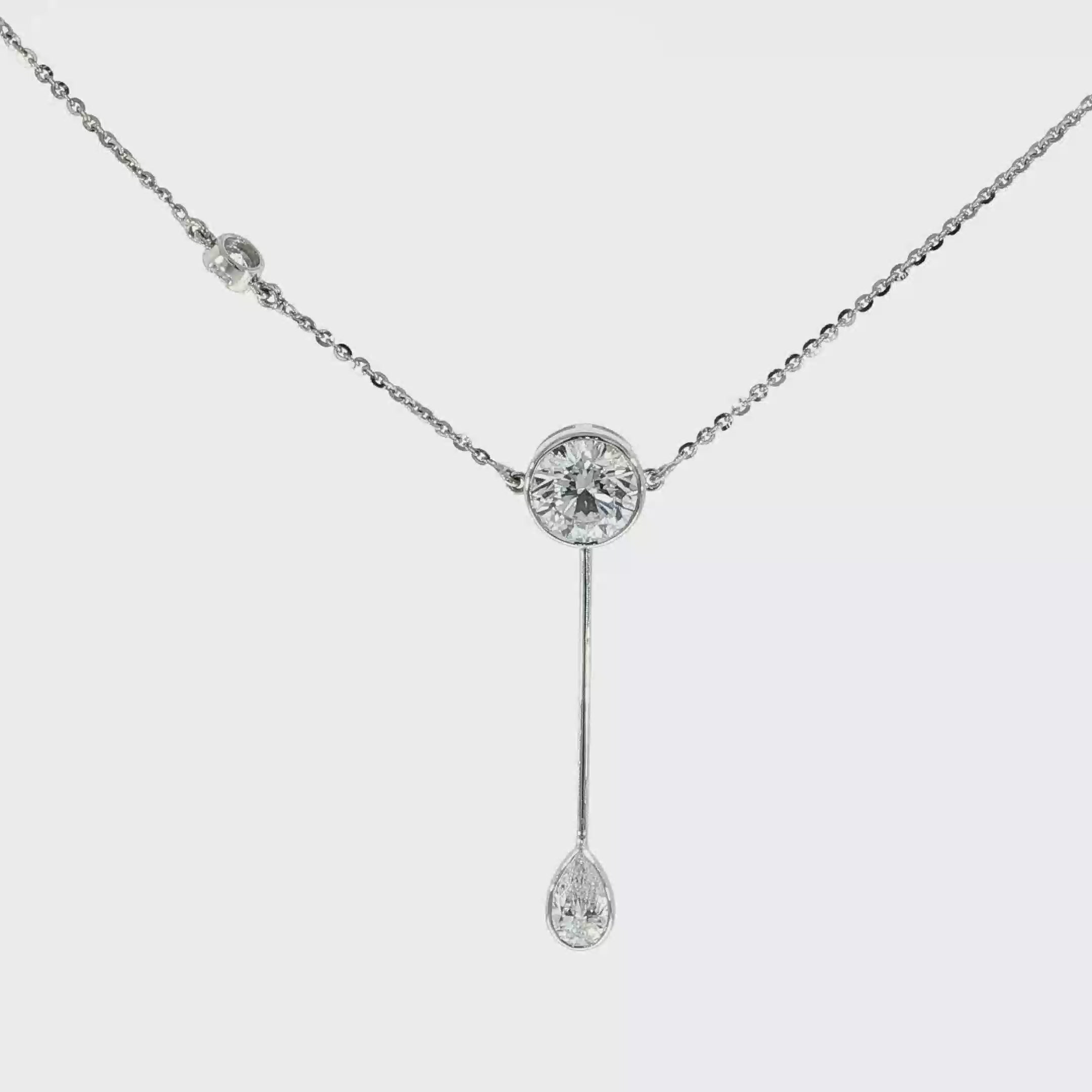 14K White Gold Asymmetric Drop Necklace – Round & Pear Design
