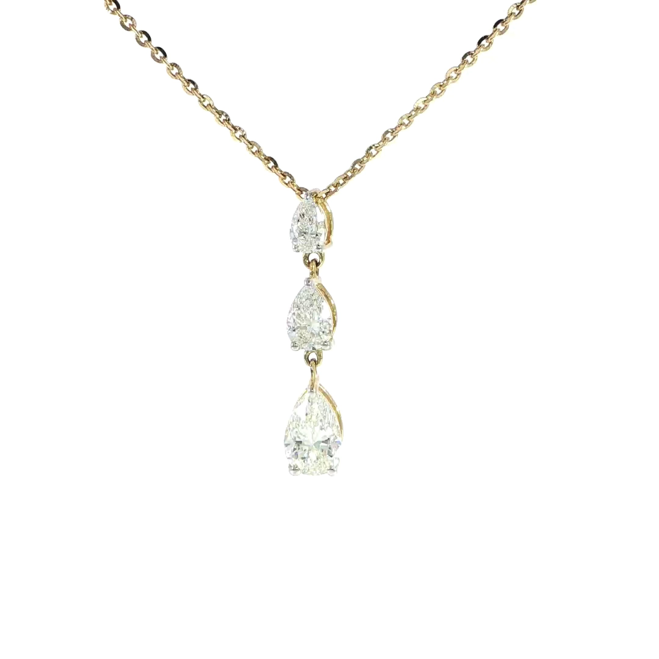 14K Yellow Gold Pear Graduated Drop Necklace – 1.38 Carats