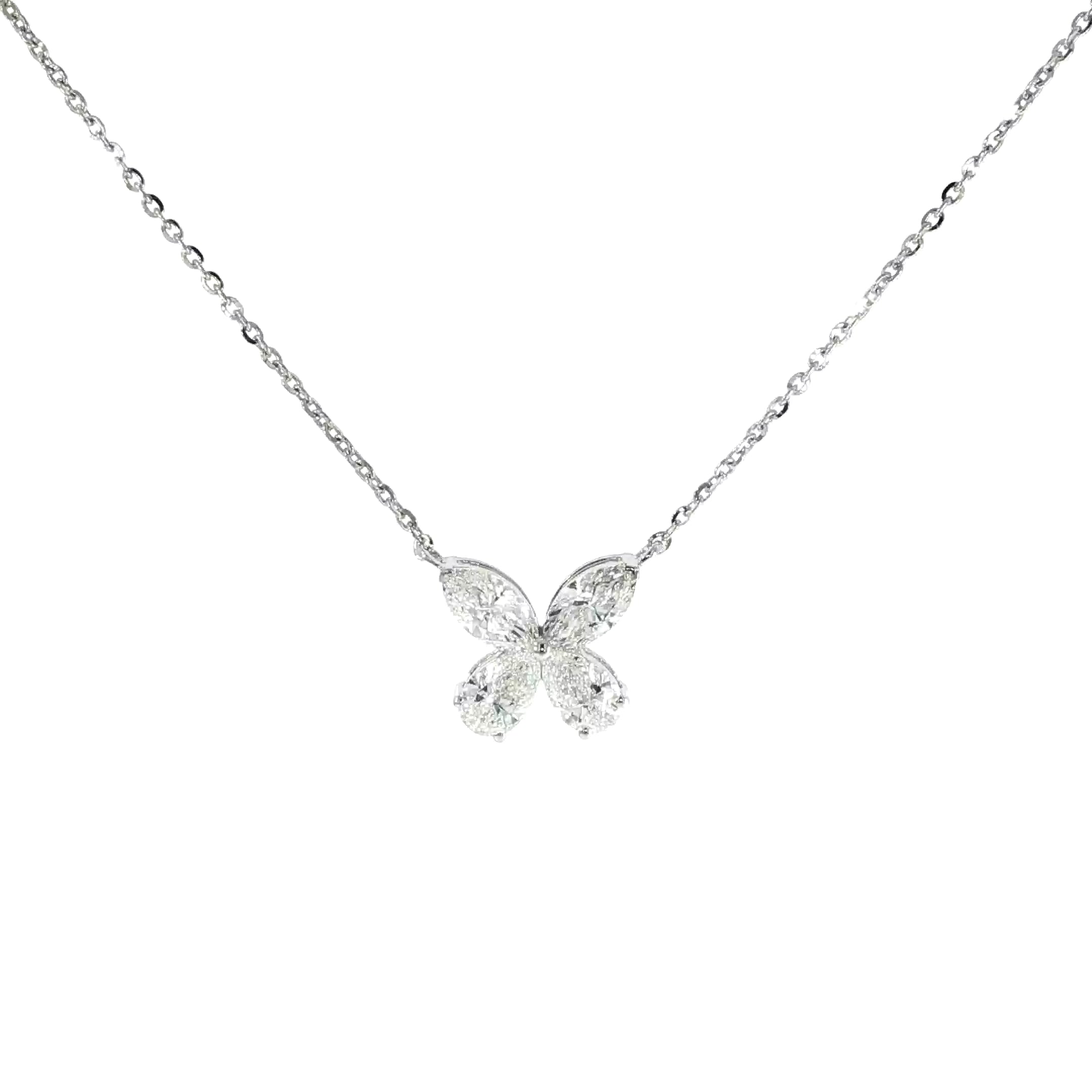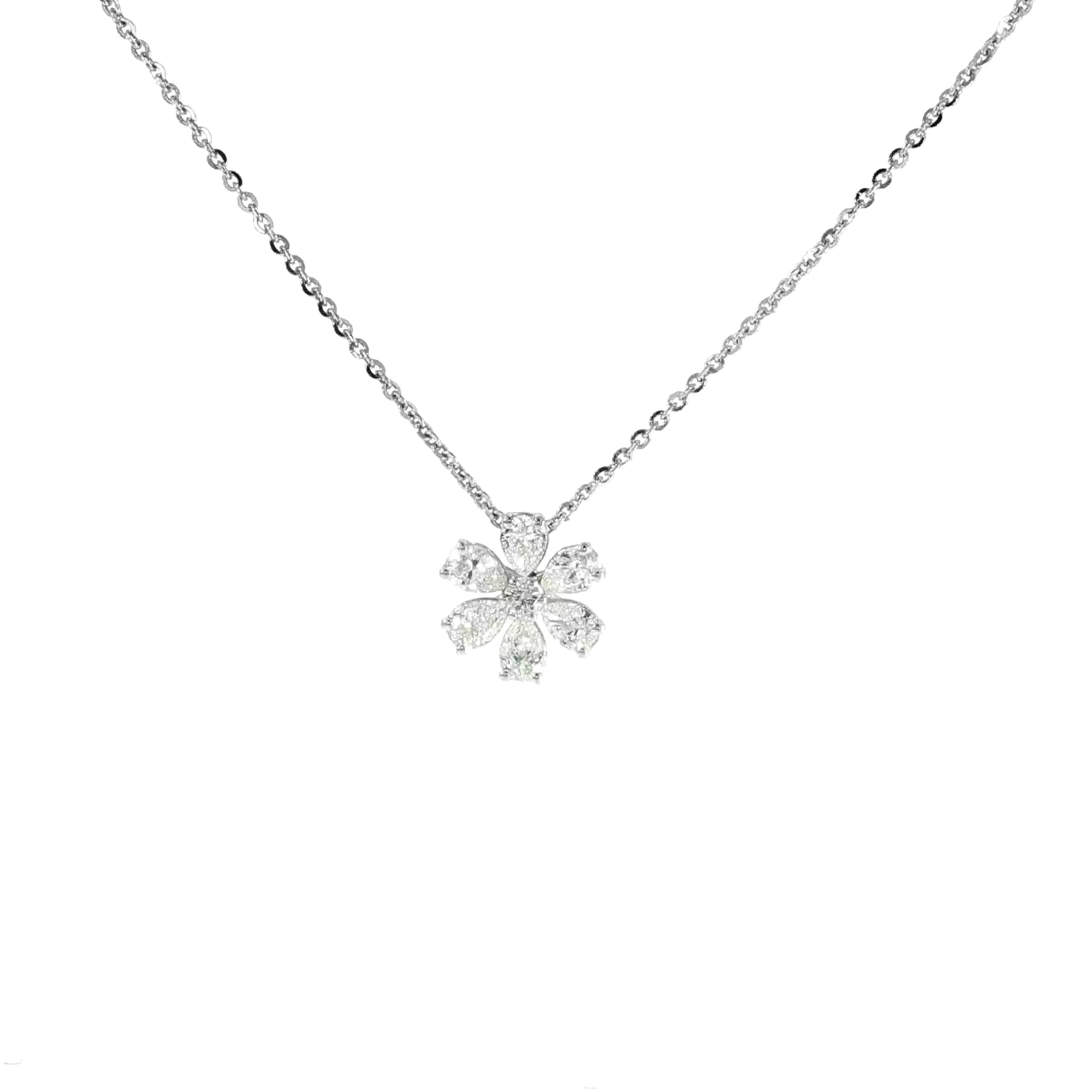 14K White Gold Marquise Diamond Flower Necklace