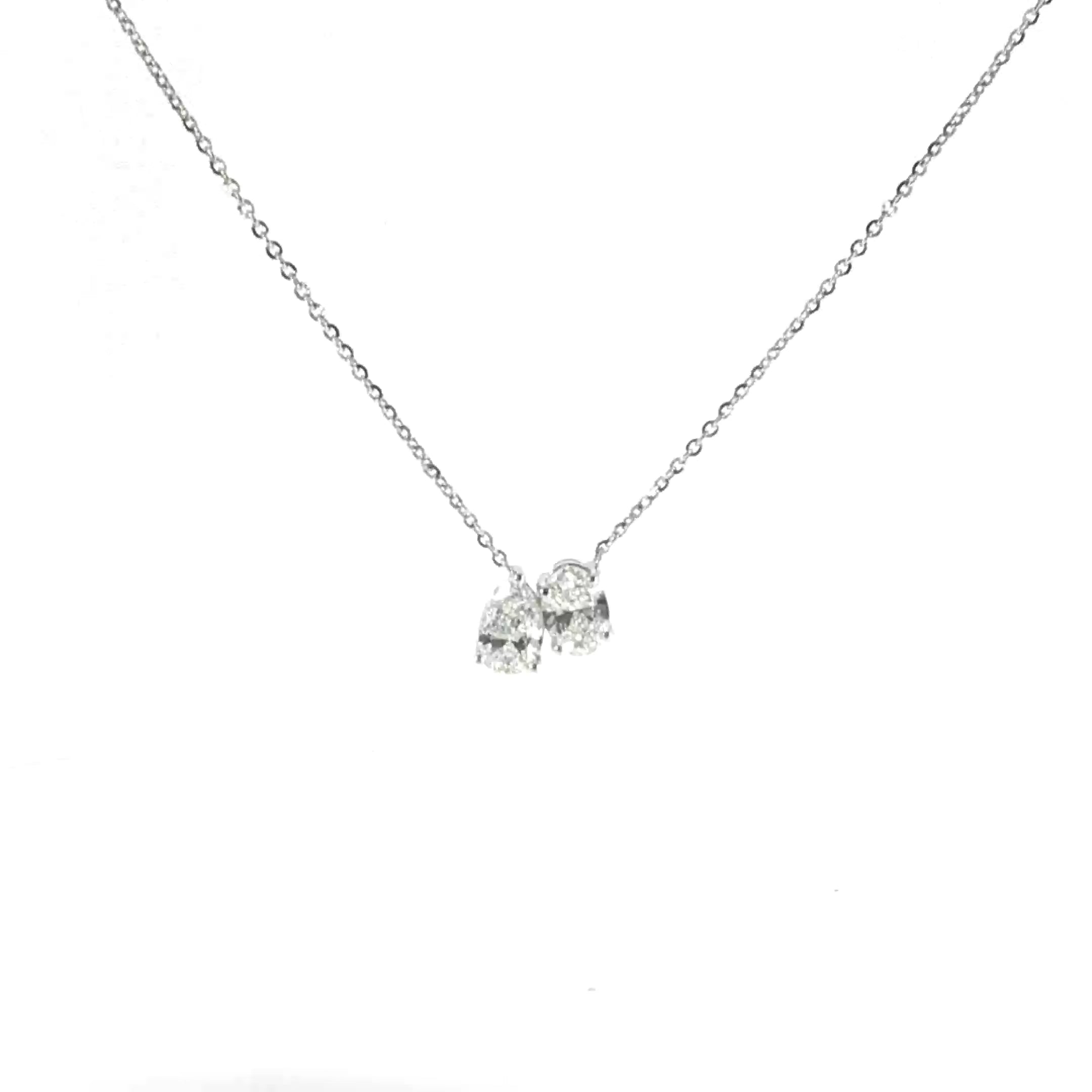 14K White Gold Toi et Moi Oval & Pear Necklace – 2 Carats Each Stone