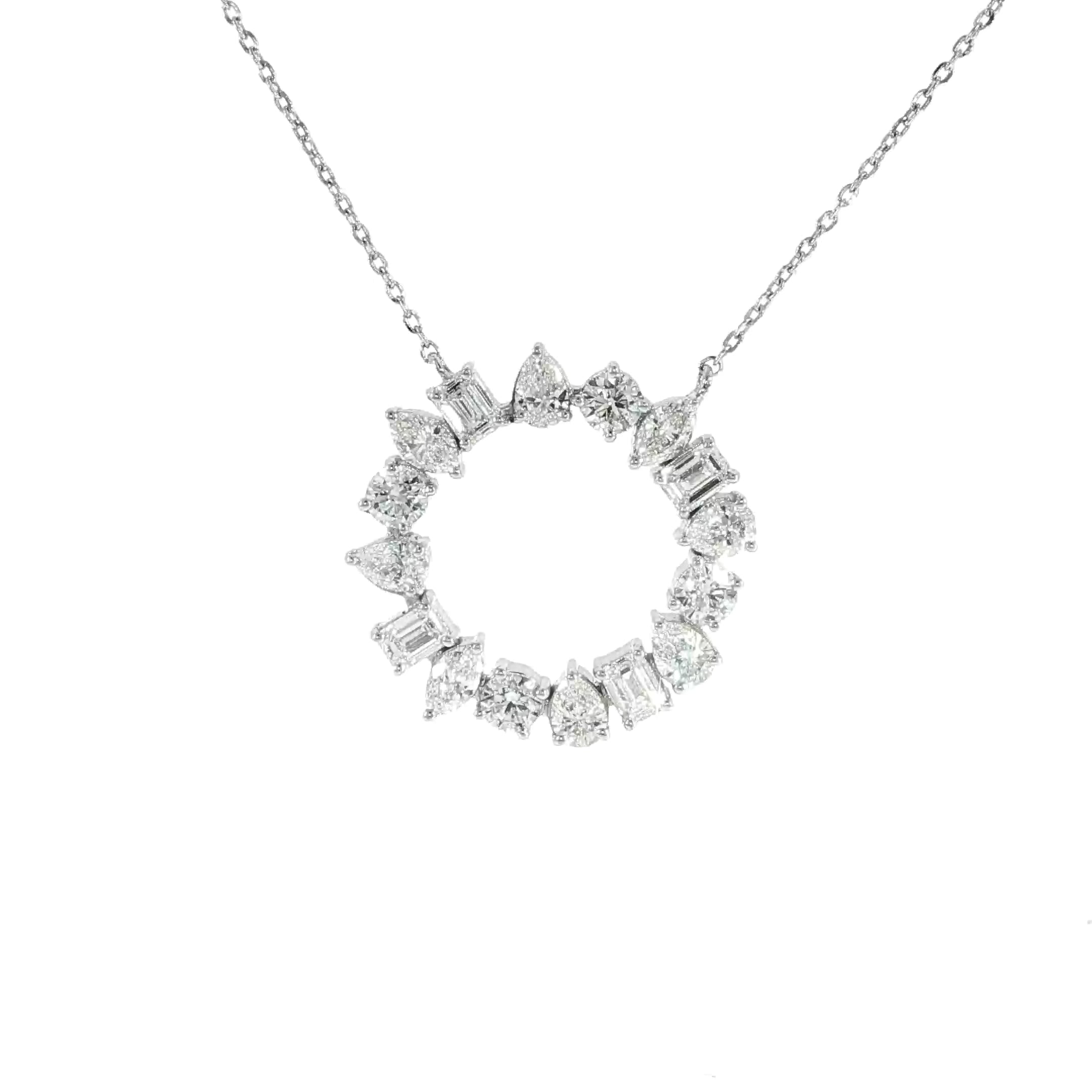14K White Gold Multi-Shape Circle Necklace – 2.05 Carats