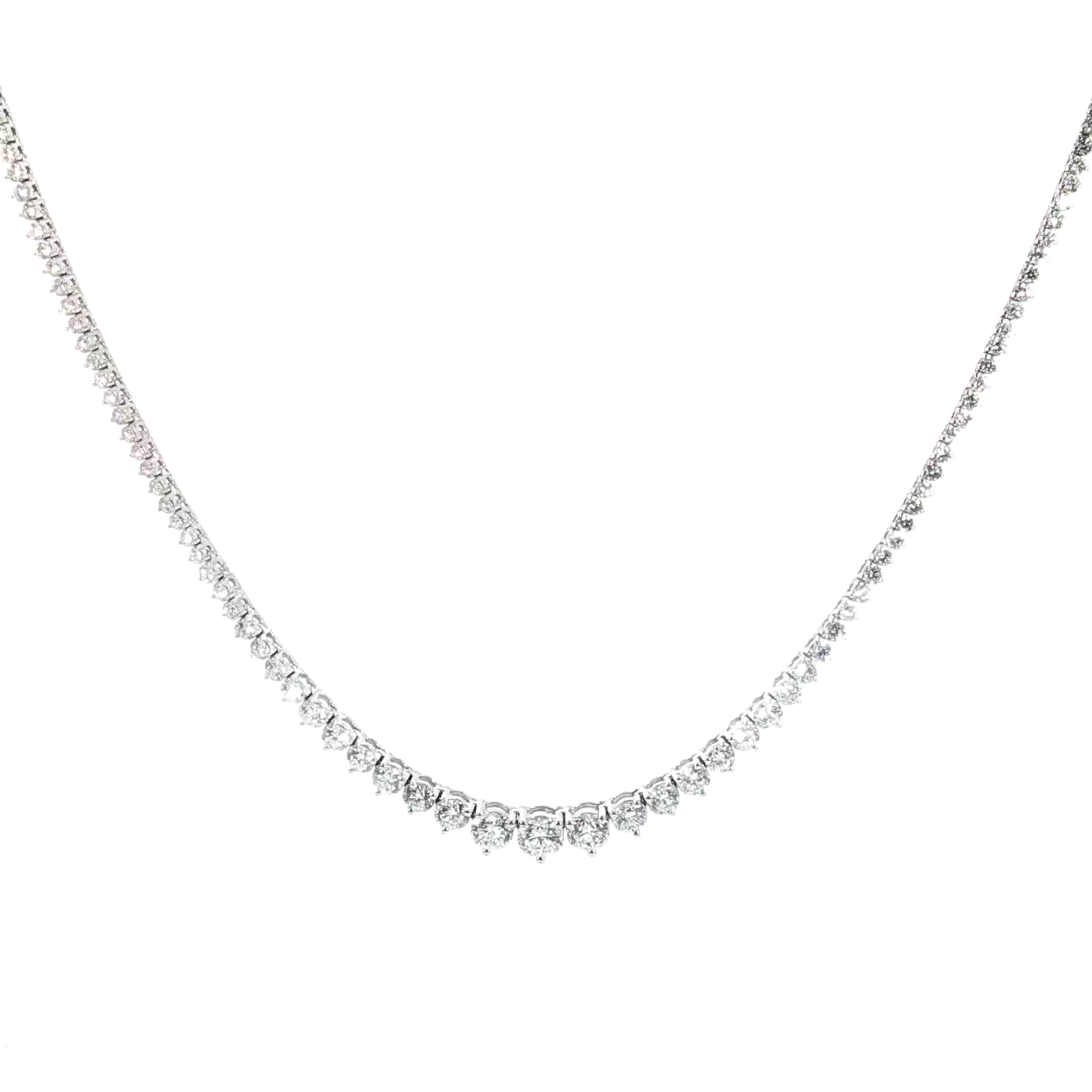 14K White Gold Diamond Graduated Tennis Necklace – 9.92 CT