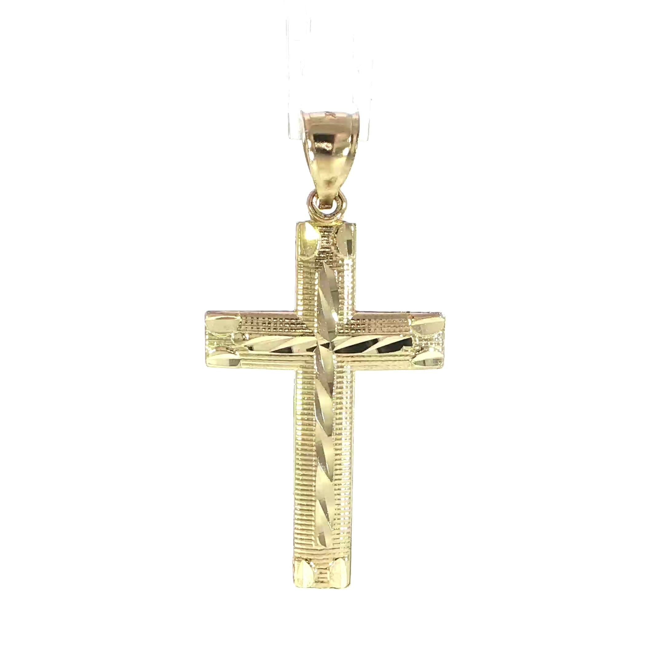 14K Yellow Gold Diamond Cut Cross Pendant - 1