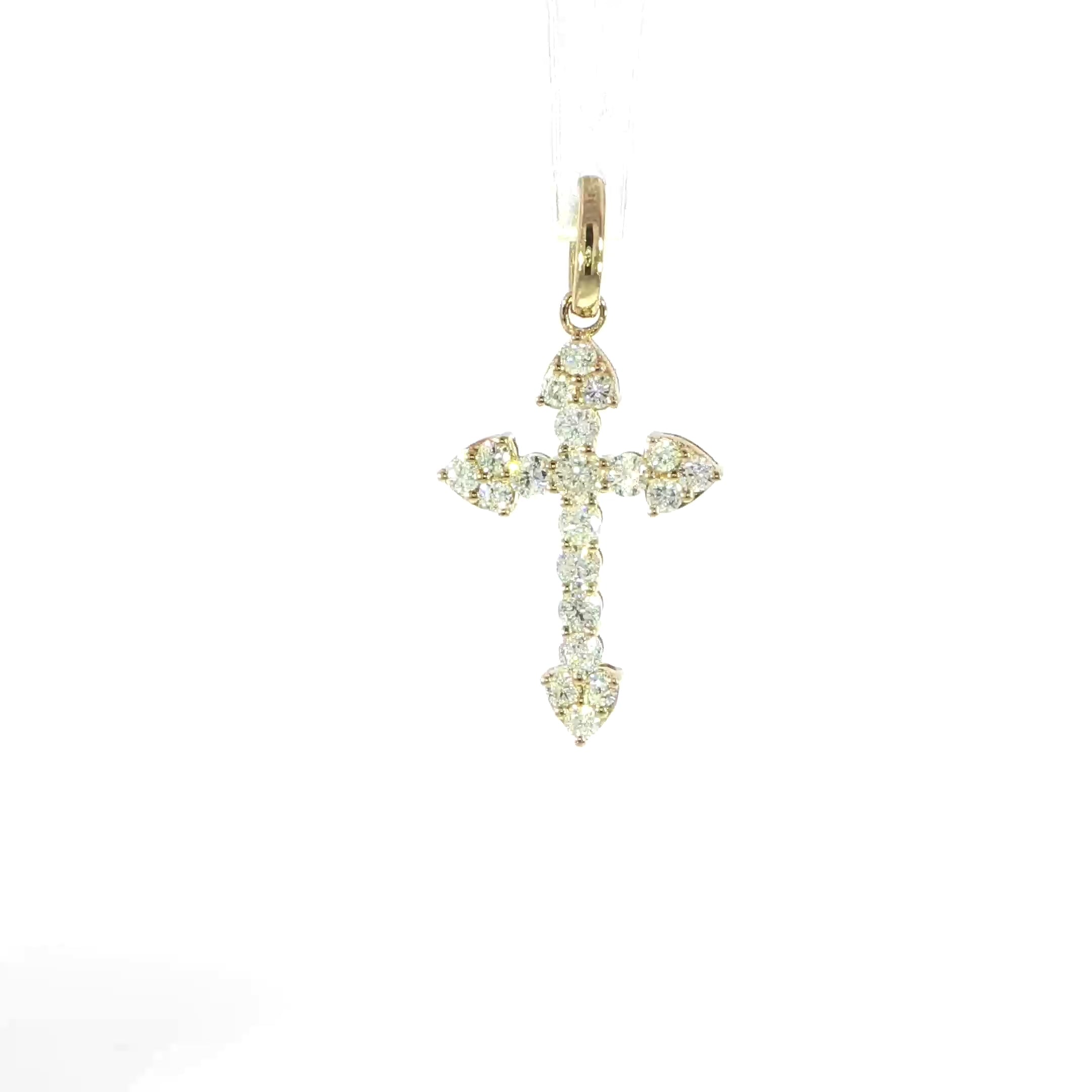 14K Yellow Gold Natural Diamond Cross Pendant