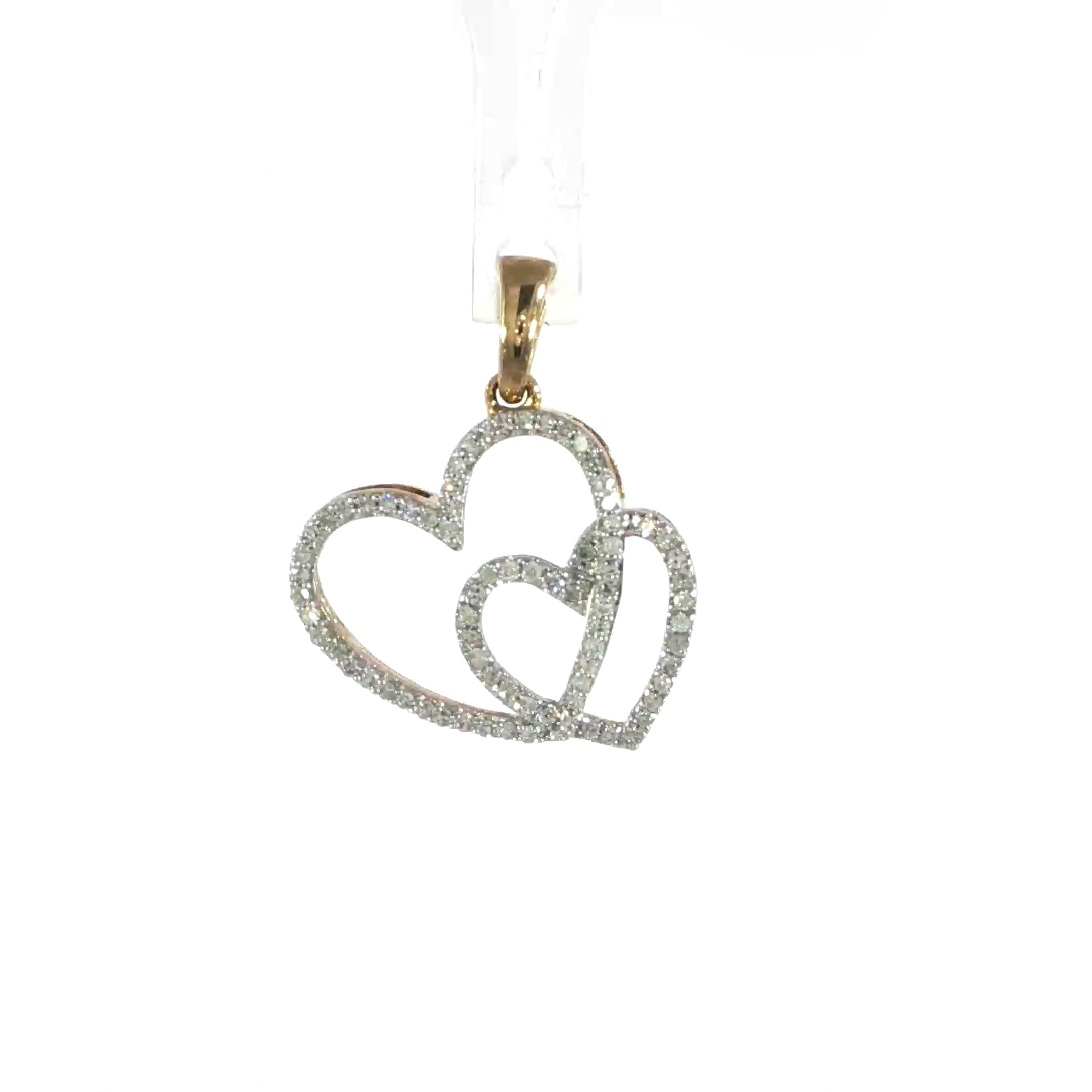 10K Yellow Gold Double Heart Charm with Diamonds - 2