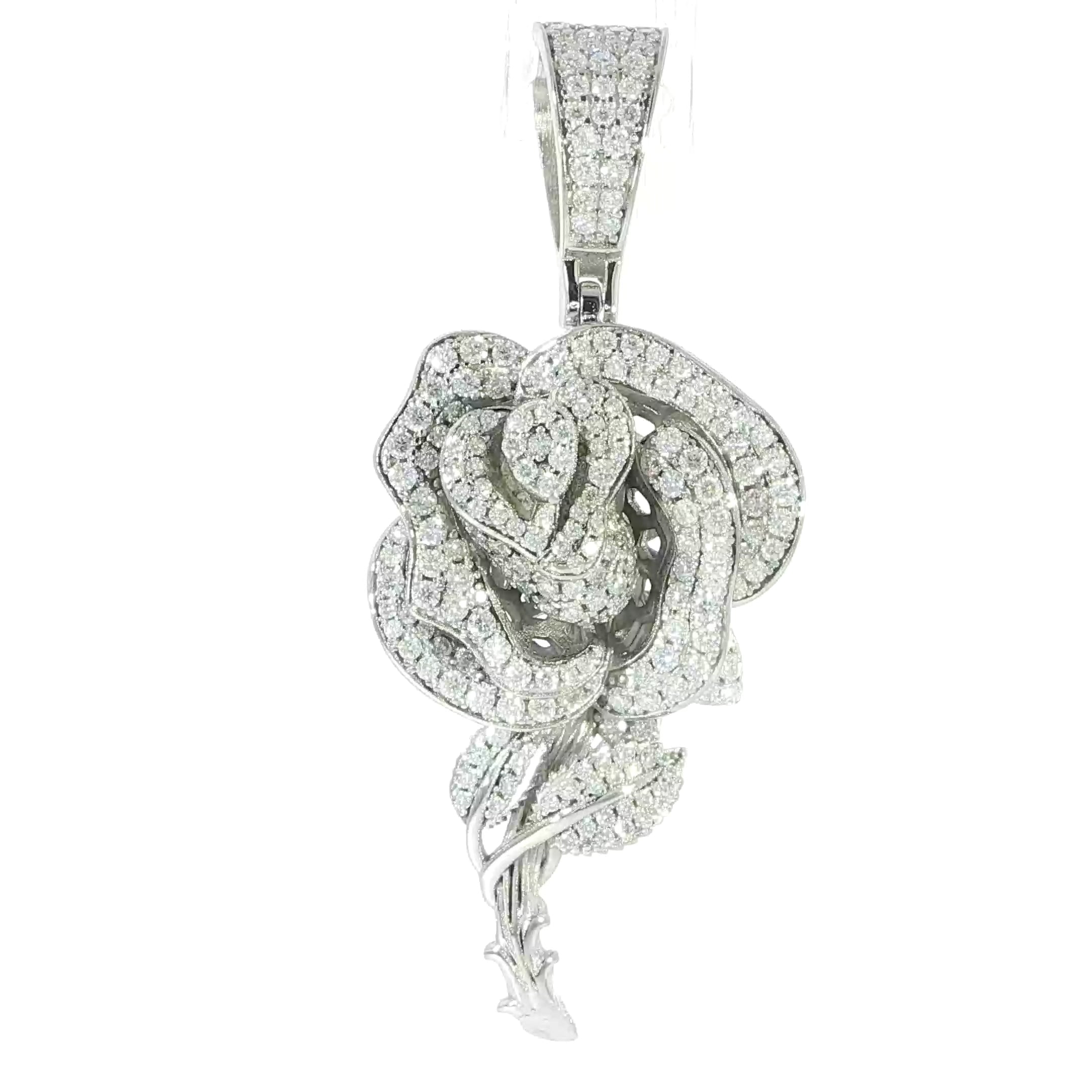 Sterling Silver VVS Moissanite Rose Flower Pendant