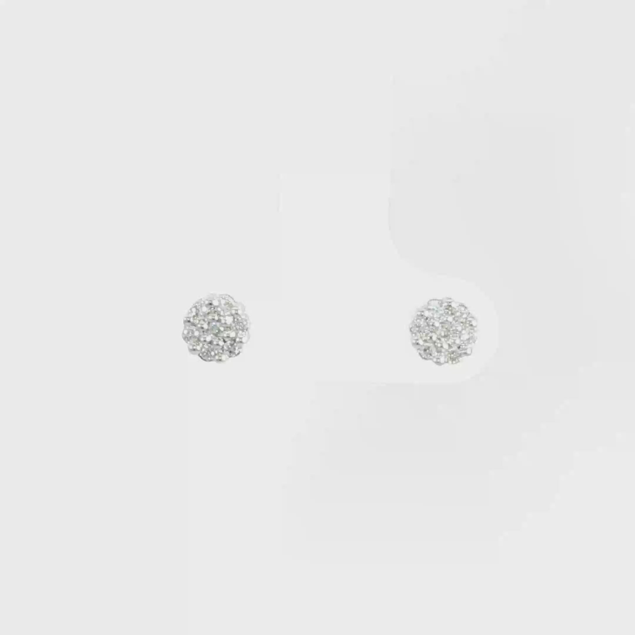 10K White Gold Natural Diamond Cluster Stud Earrings