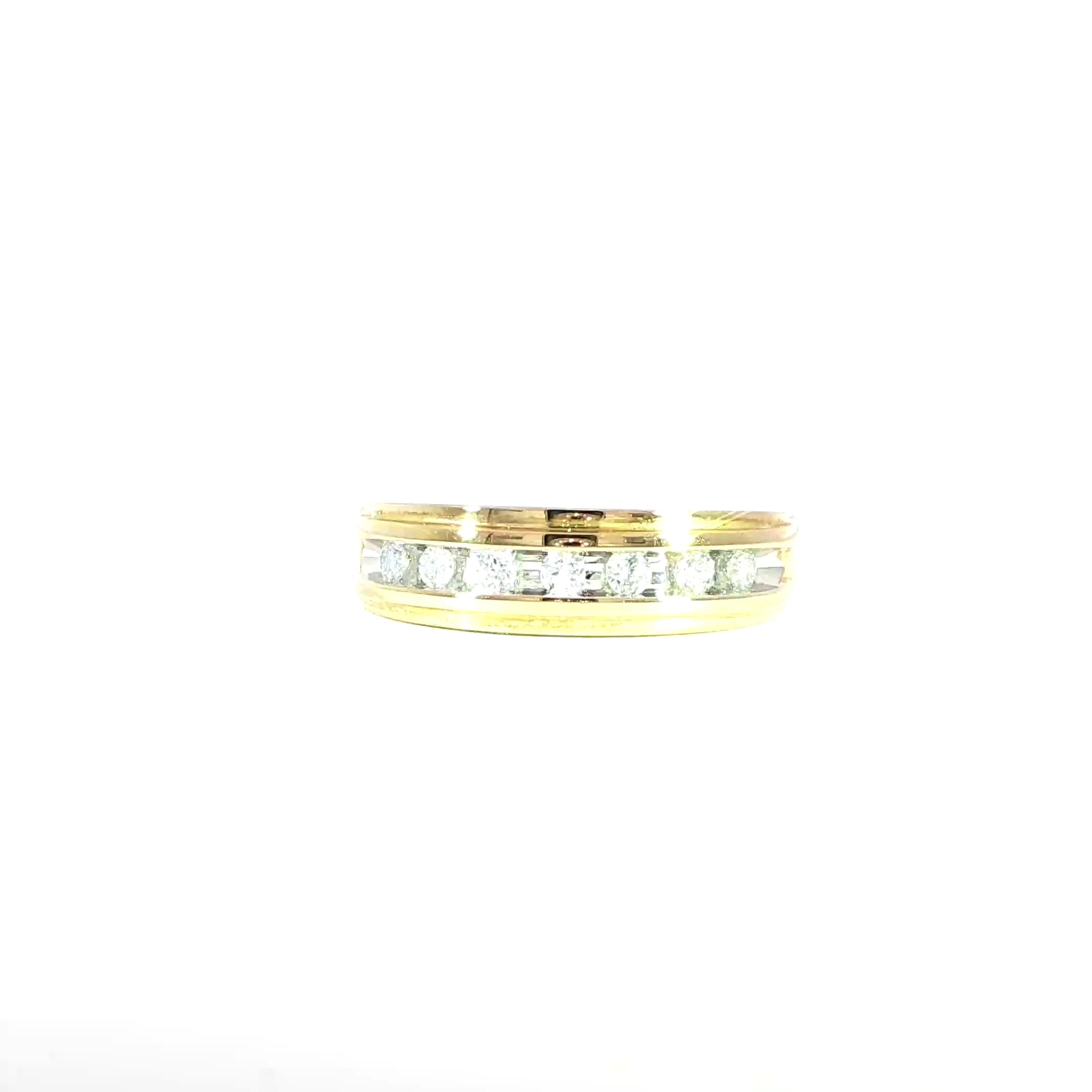 This striking 10K yellow gold band features a sleek channel-set row of 0.29CTW natural SI diamonds, offering a timeless balance of brilliance and sophistication. With its 6.3mm top width, it’s a perfect choice for both everyday wear and formal occasions.