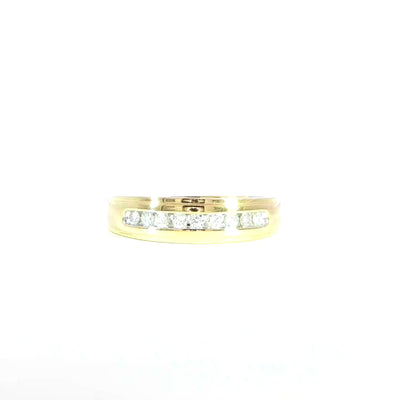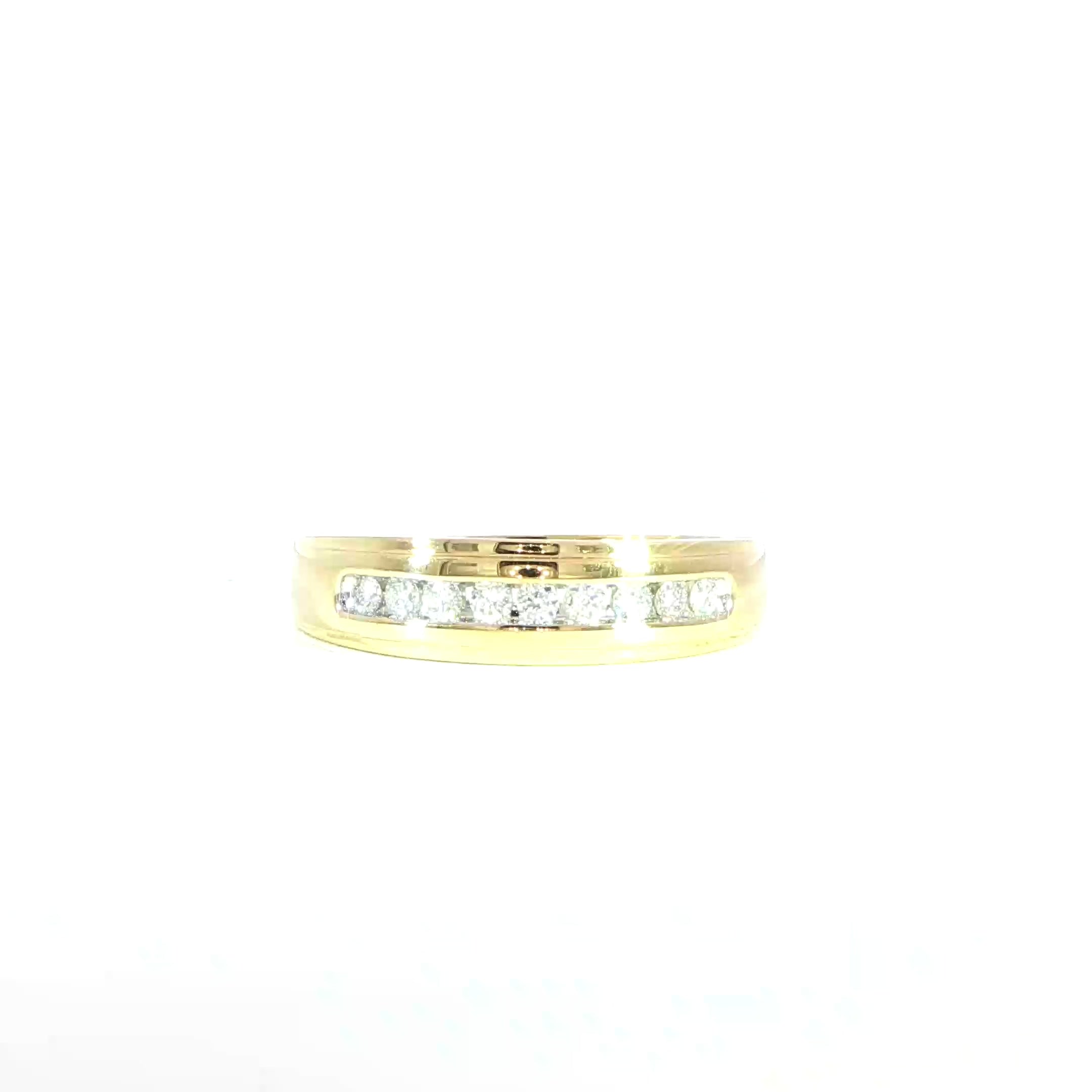Crafted in 10K yellow gold, this timeless diamond band features 0.20 carat total weight of SI natural diamonds set across a sleek 5.8mm top width.