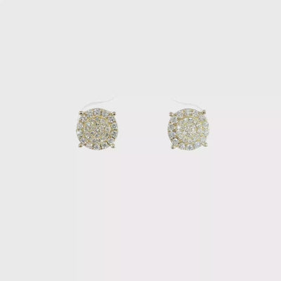 Radiant and refined ā these 10K yellow gold earrings feature a stunning round cluster of natural diamonds that catch the light beautifully, adding a luxurious sparkle to any look.