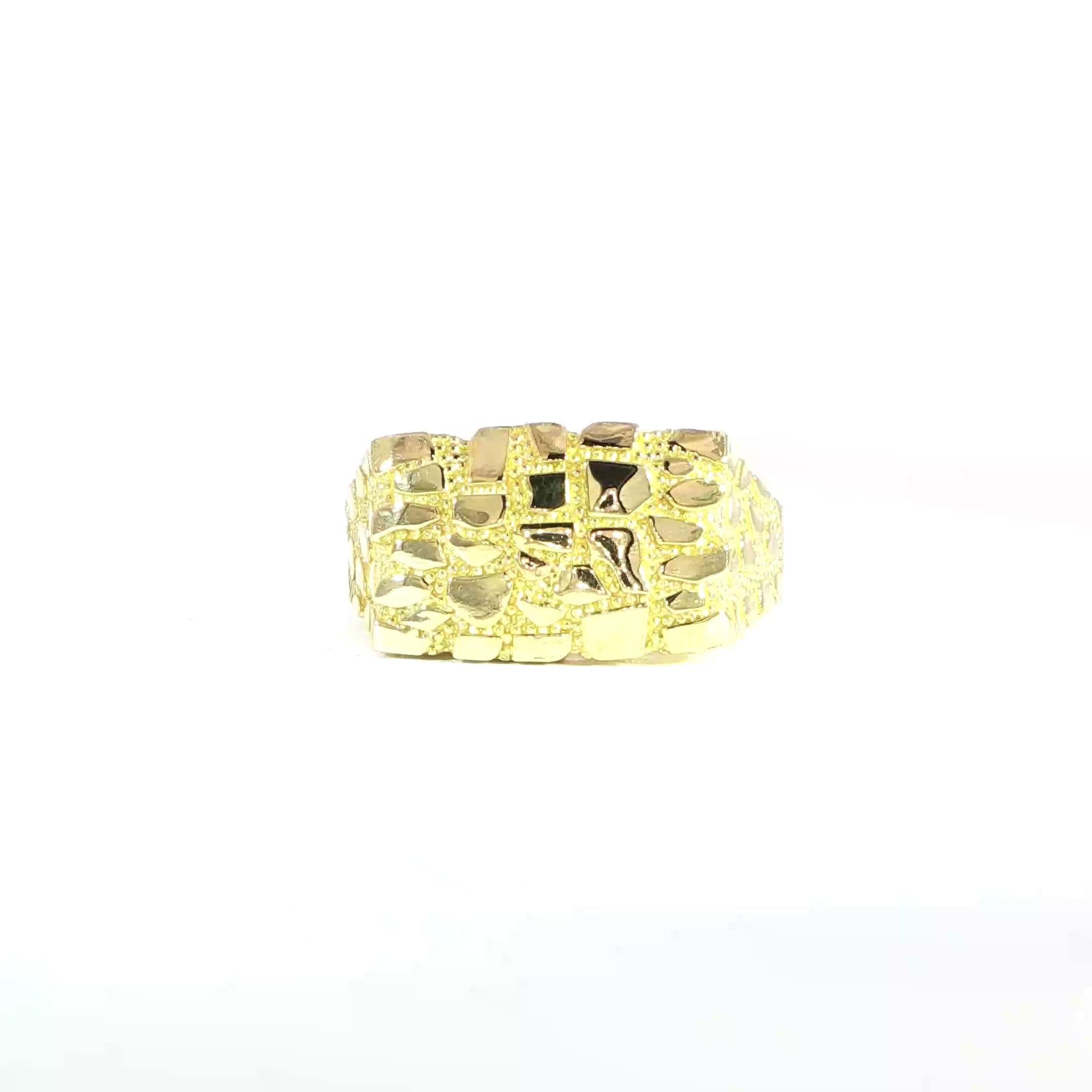 Bold and timeless ā this 10K yellow gold nugget ring showcases a textured surface inspired by natural gold formations, making it a standout piece for those who appreciate unique and classic designs.