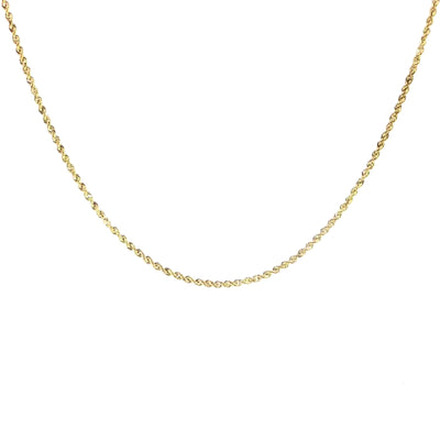 This sleek and lightweight 10K yellow gold Semi rope chain offers a classic shine and smooth finish, perfect for everyday wear or layering with a pendant.