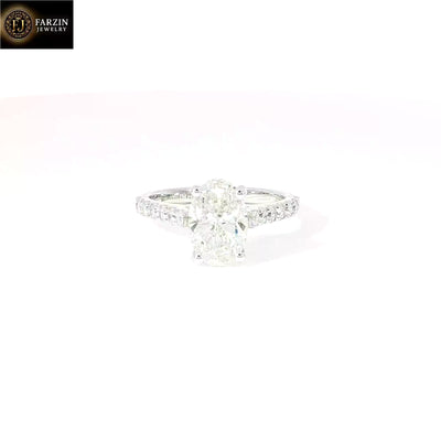 Crafted in elegant 14K white gold, this timeless engagement ring features a dazzling 2-carat IGI-certified lab-grown oval diamond at the center, with accent stones bringing the total weight to 2.5 carats of brilliance.