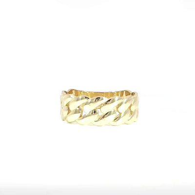 Add a touch of bold elegance to your jewelry collection with this stunning 14K Gold Cuban Link Ring. Perfect for those who love timeless and statement designs.