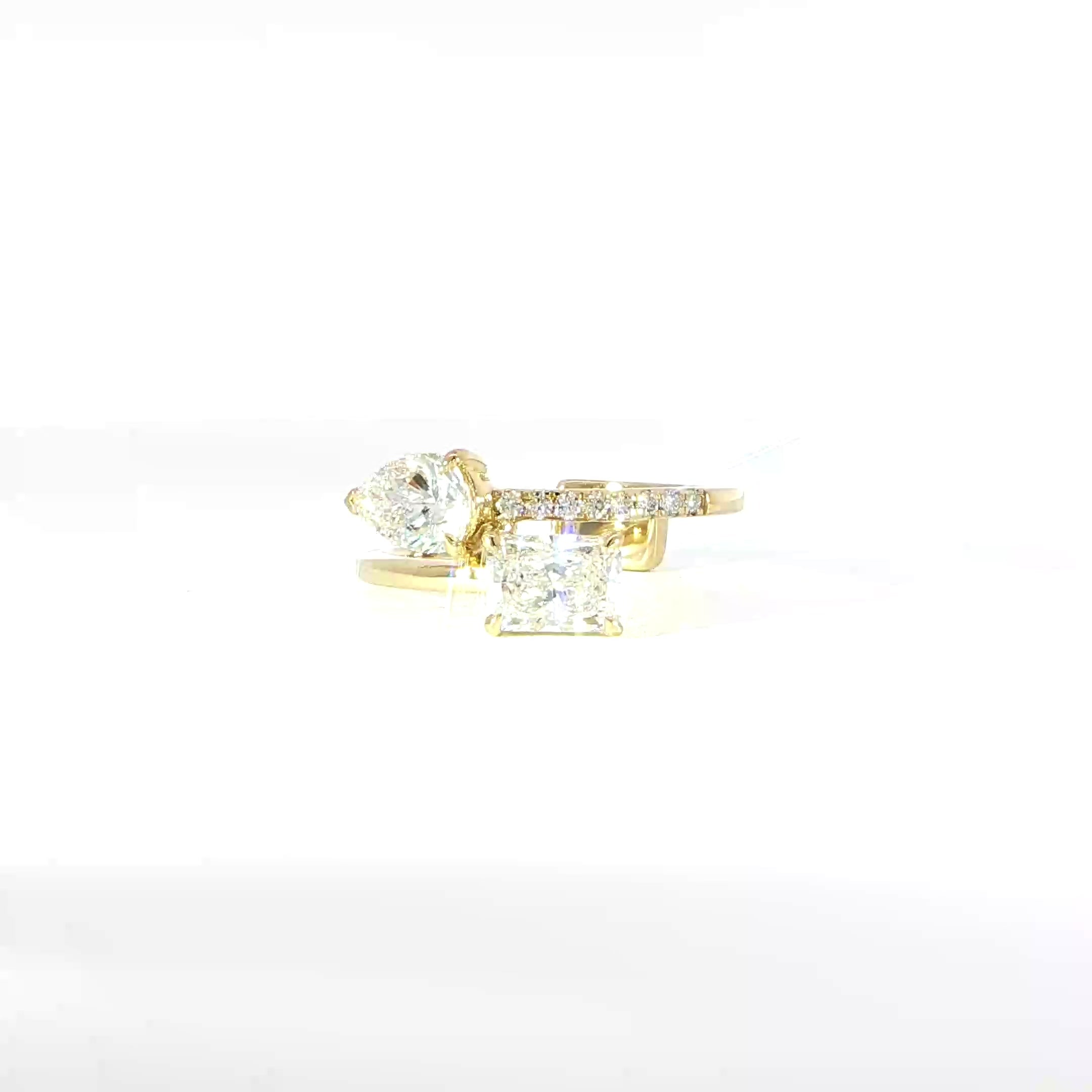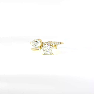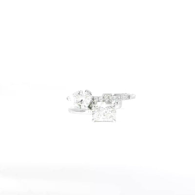 Make a statement with this unique designer ring, featuring lab grown diamonds in a stunning asymmetrical design. With a mix of diamond shapes and a delicate pavé band, this piece brings modern elegance to your collection.