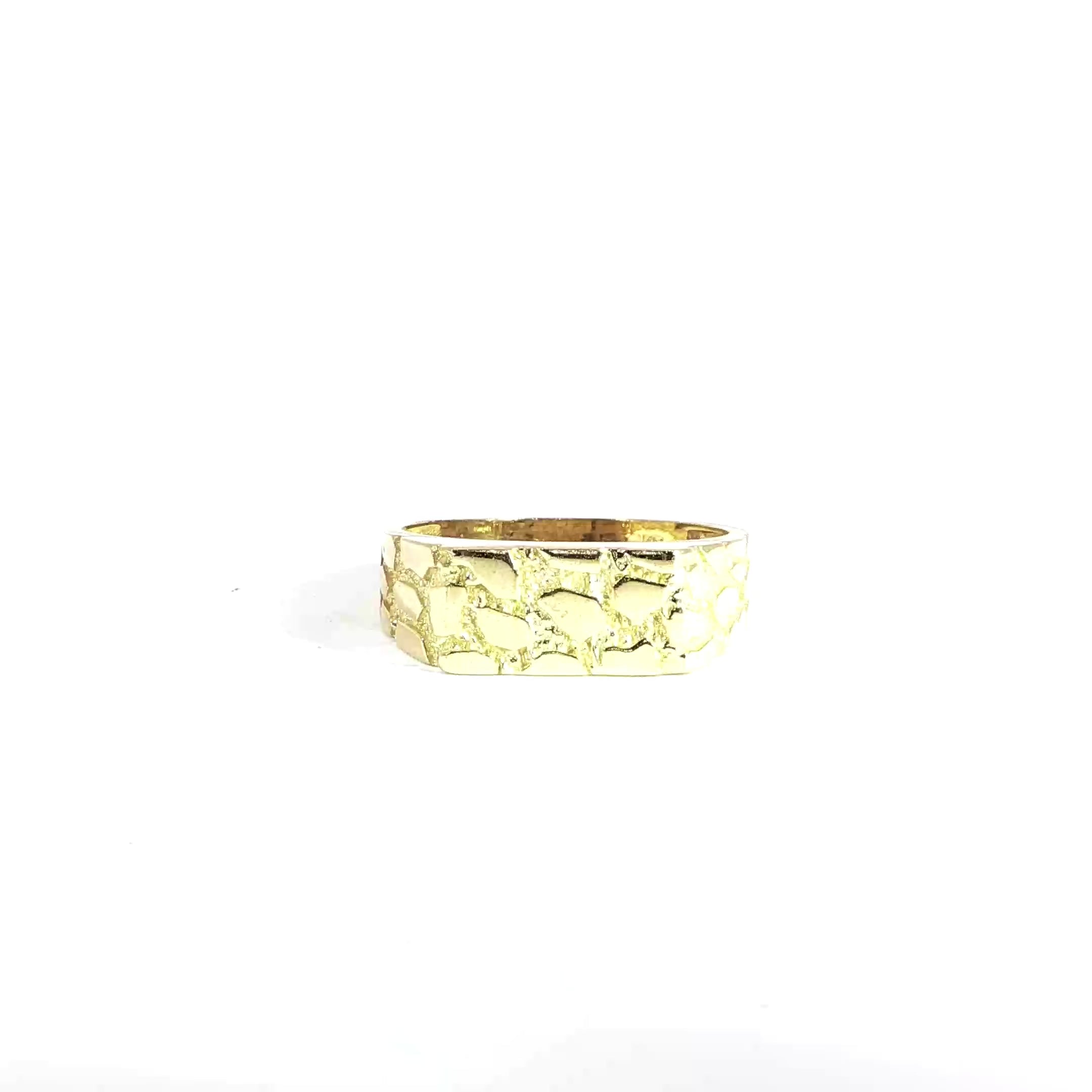 Bold texture meets timeless craftsmanship. This 7.6mm nugget-style band is crafted in solid 14K yellow gold, featuring a rugged yet polished finish — perfect for those who appreciate strength and style in one.