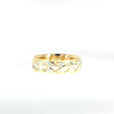 Crafted in elegant 14K two-tone gold, this band features a refined diamond-cut pattern that beautifully blends yellow and white gold tones. Its timeless style and solid craftsmanship make it ideal for daily wear or as a wedding band.