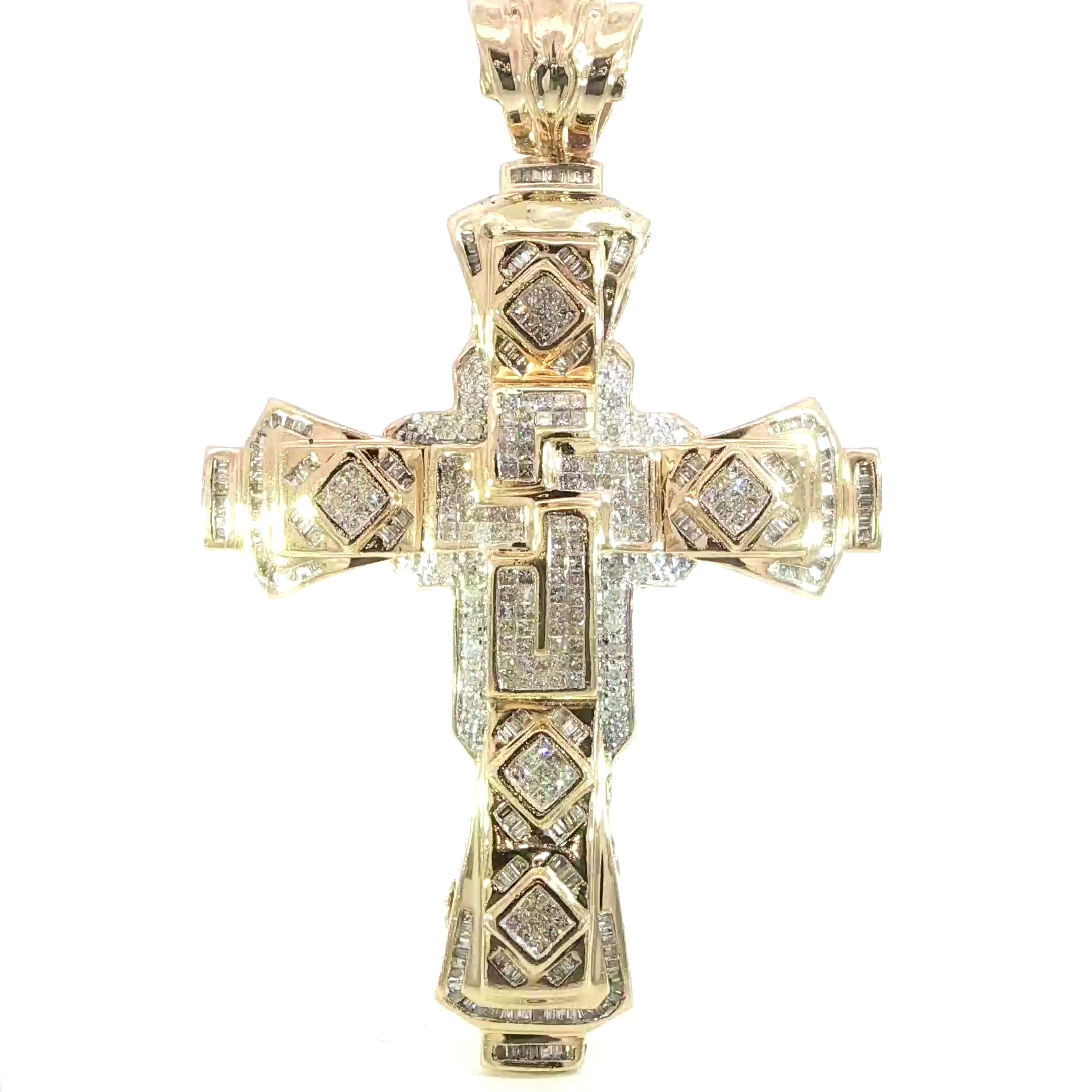 A breathtaking 14K yellow gold cross pendant, adorned with 2.25 carats of SI natural diamonds for an elegant and radiant finish. This intricately designed piece is a statement of faith and luxury, perfect for any occasion.