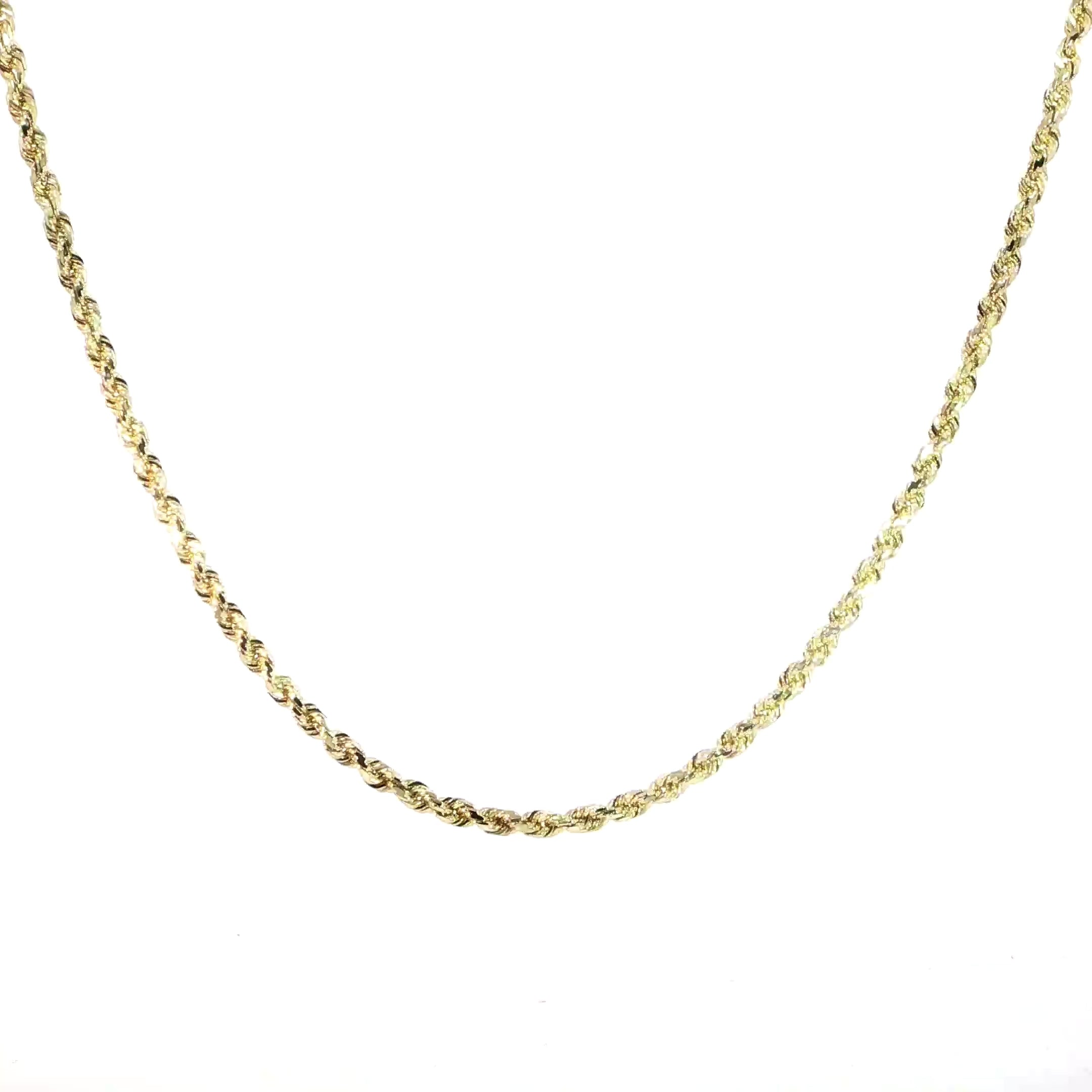 Crafted in rich 14K yellow gold, this solid 3.5mm rope chain features a brilliant diamond-cut finish that catches the light from every angle. A timeless piece with luxurious weight and durability, perfect to wear solo or with a pendant.
