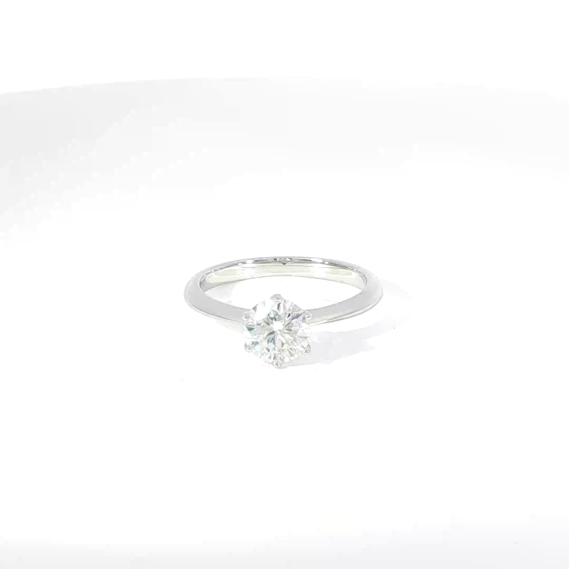 A classic and elegant engagement ring crafted in 925 sterling silver, featuring a brilliant 1.00 carat VVS moissanite center stone. This timeless piece offers incredible sparkle and beauty, making it the perfect symbol of love.