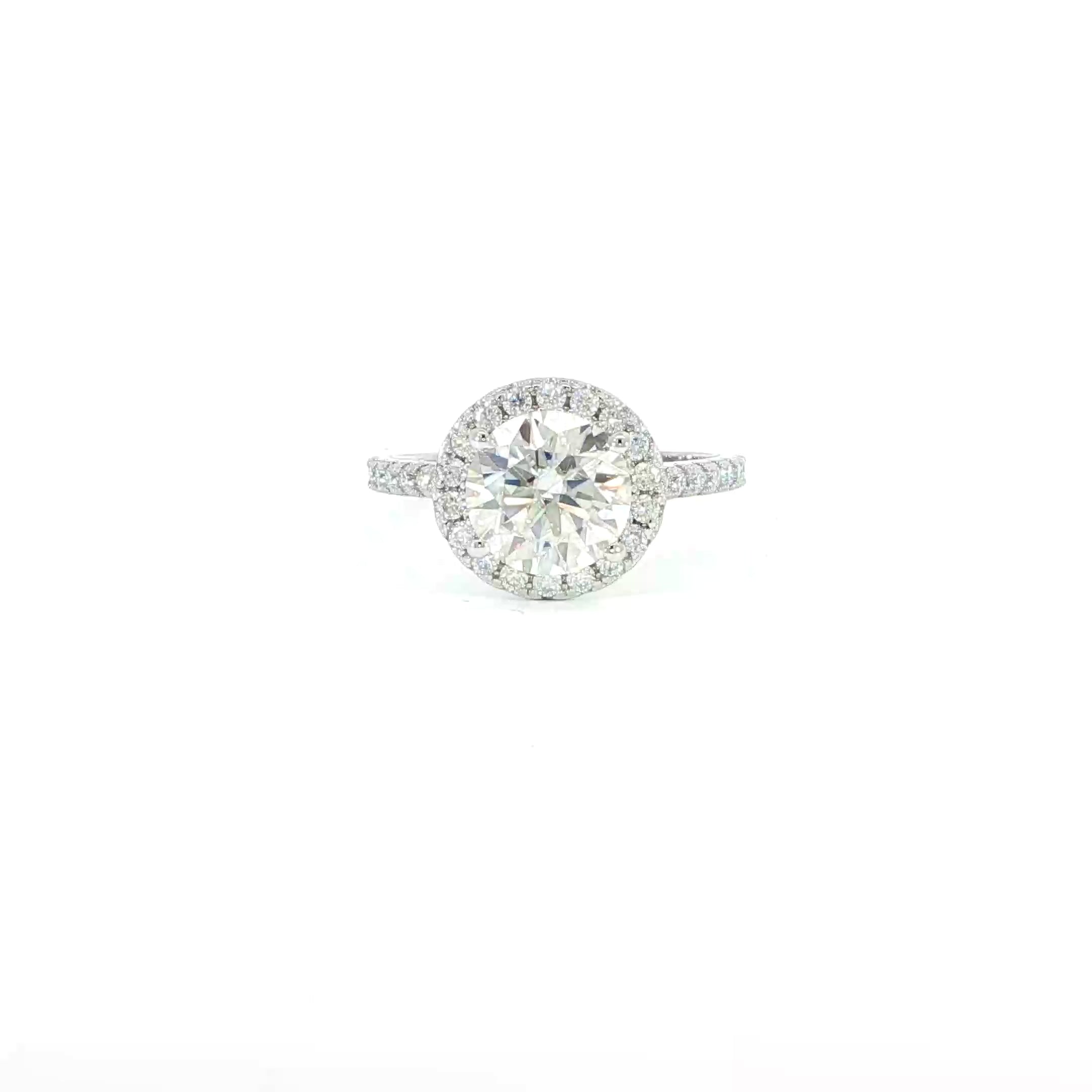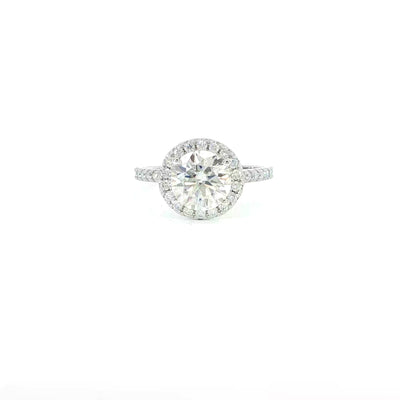 This elegant engagement ring is crafted in 925 Sterling Silver with VVS Moissanite, delivering brilliance and lasting beauty. The round 2 carat center stone is surrounded by a shimmering halo and accented band, making it a timeless piece for any occasion.