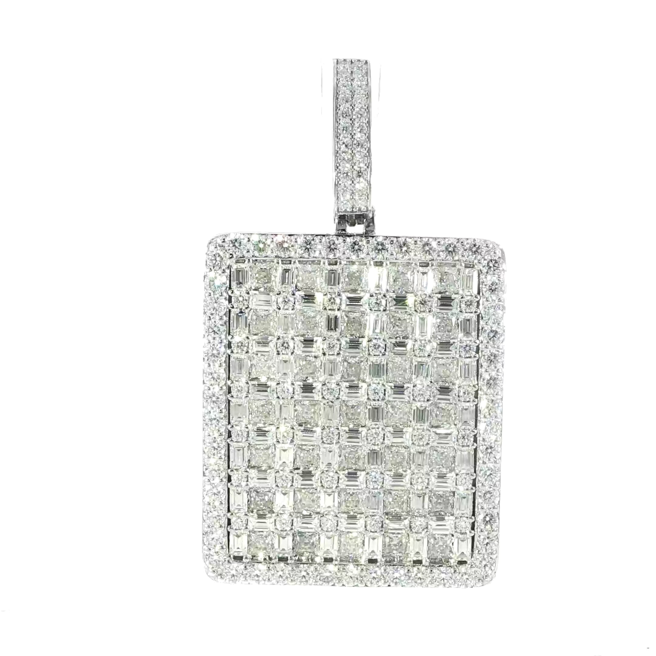 Make a bold statement with this stunning iced-out rectangle pendant, crafted in solid 925 sterling silver and fully covered in VVS moissanite stones for unbeatable brilliance and luxury at a fraction of the cost.