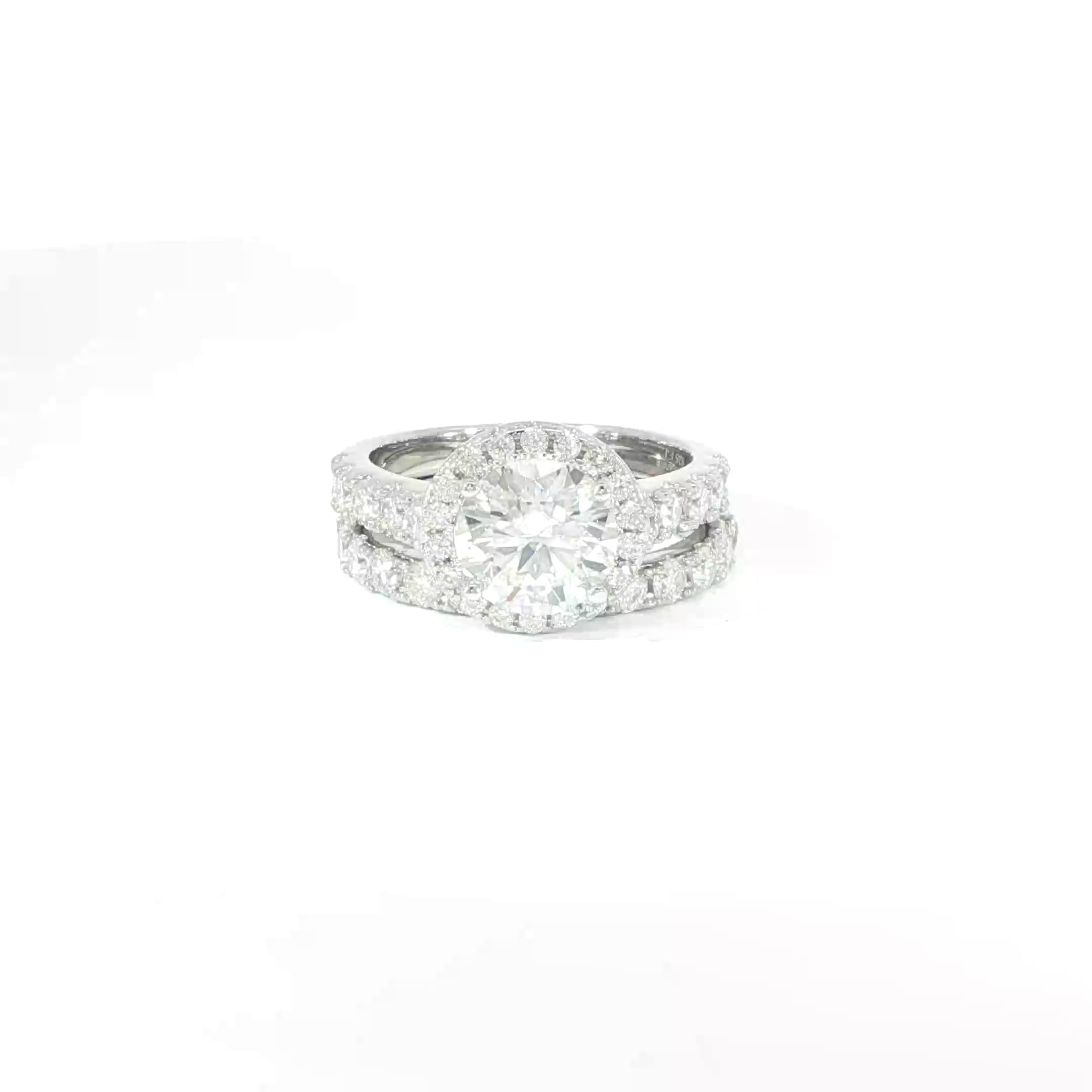 925 Sterling Silver Halo Ring Set with VVS Moissanite - 3.93ctw