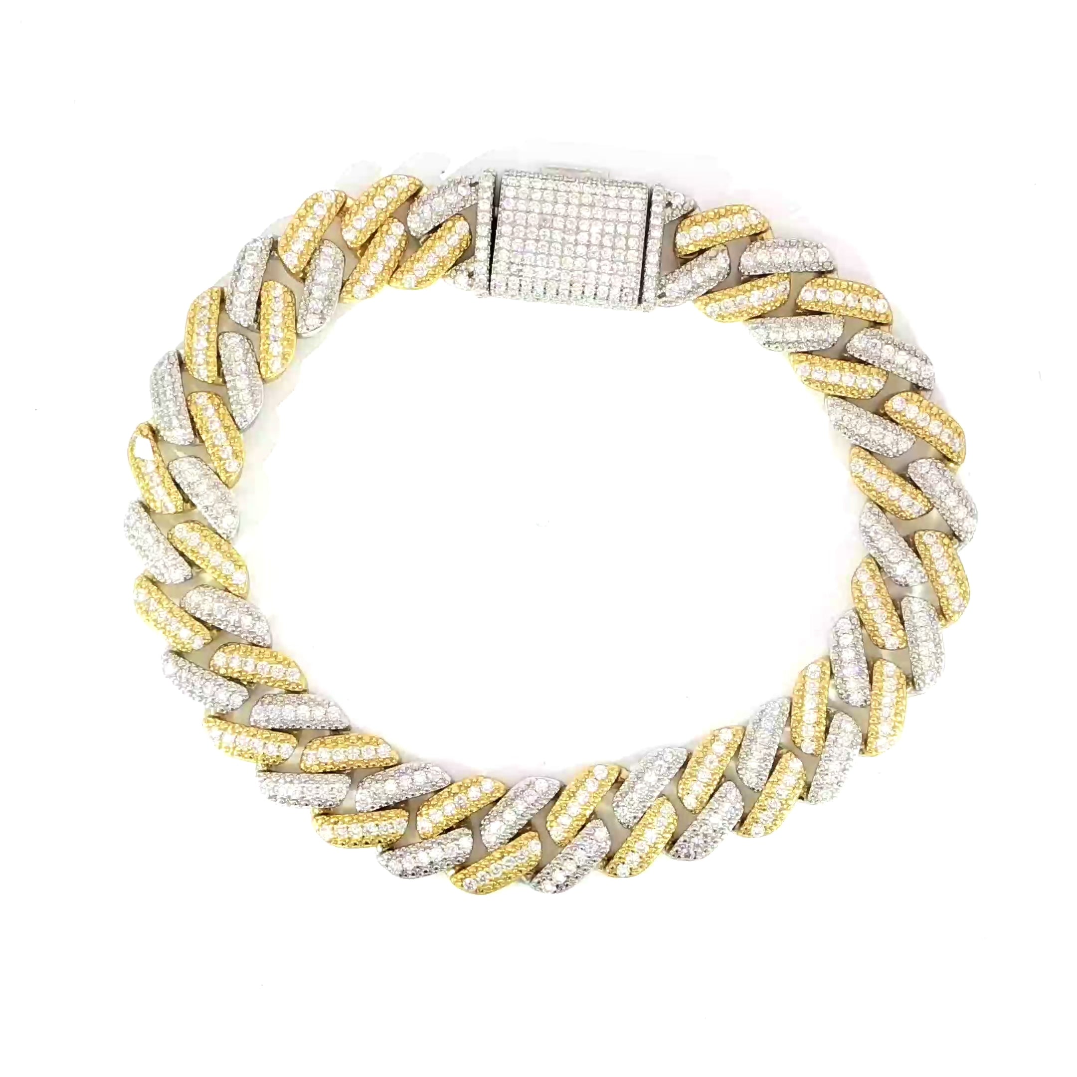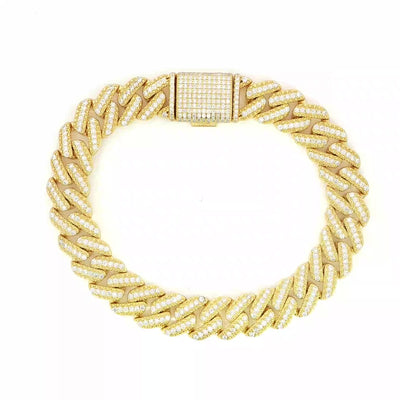 This solid mini Cuban bracelet is the epitome of luxury and craftsmanship, designed in sterling silver and adorned with 5.25 carats of dazzling VVS Moissanite stones. Weighing an impressive 46.77 grams, this piece adds elegance and sophistication to your collection.