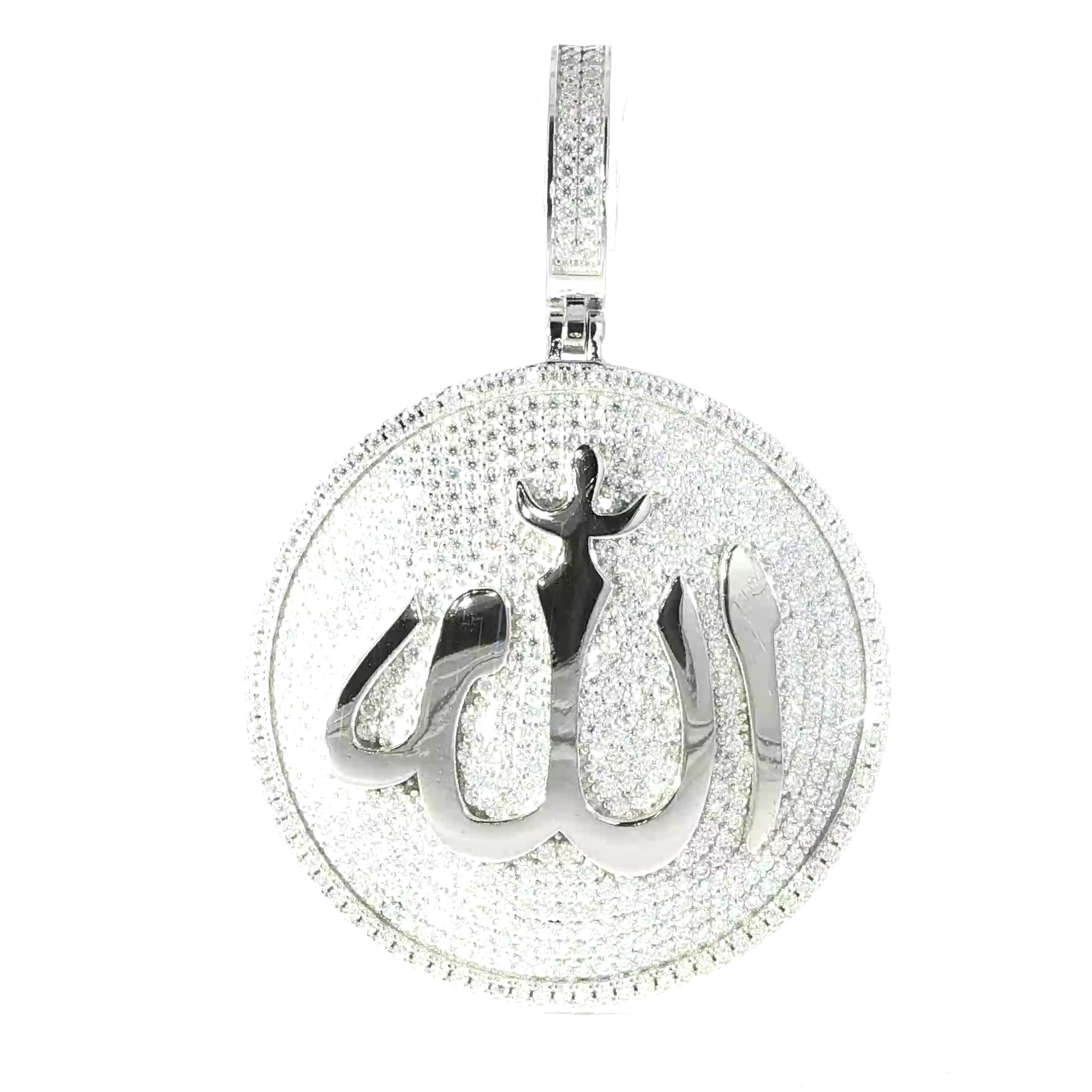 Sterling Silver Allah Pendant with VVS Moissanite - 8.8 Carats