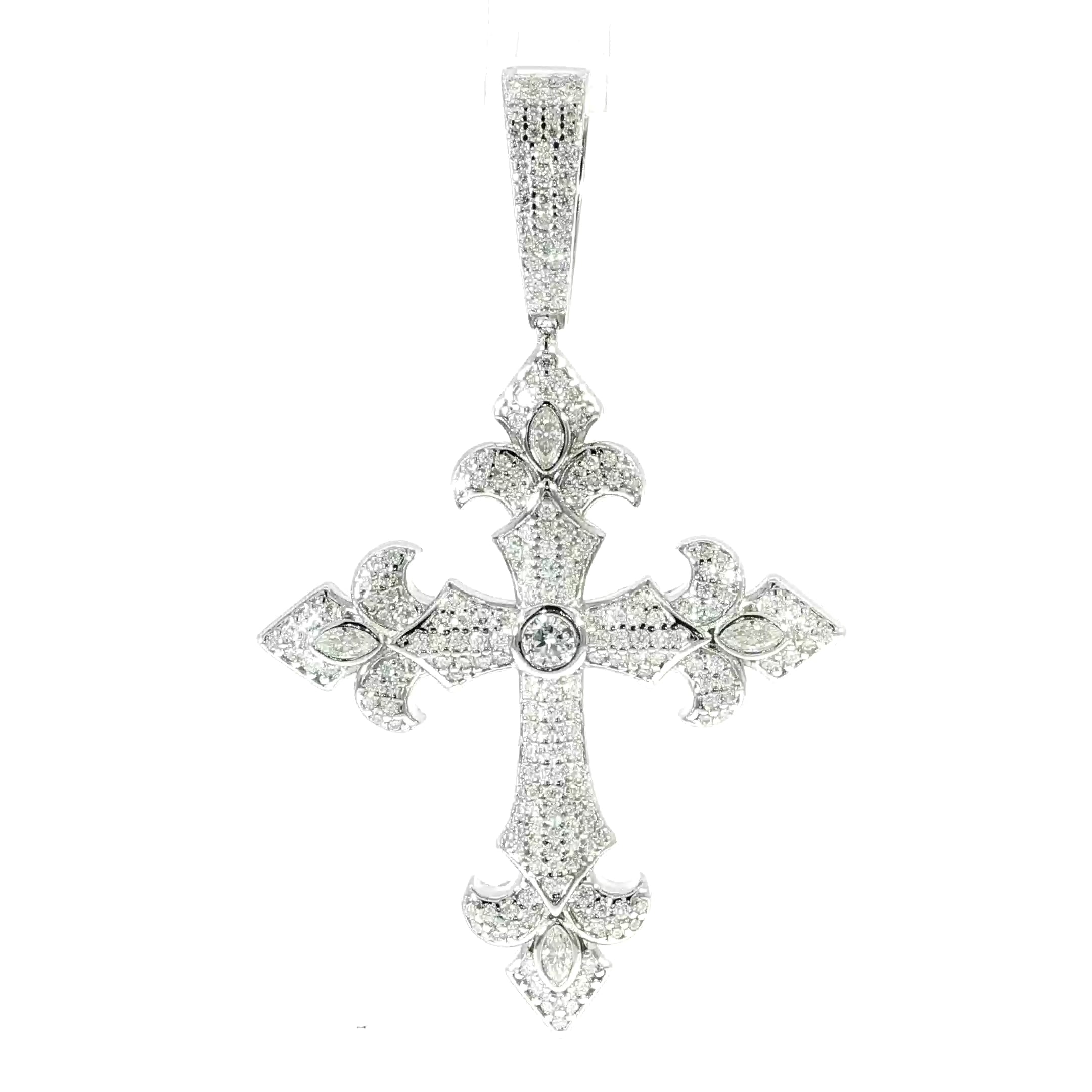 Sterling Silver Fleur-de-Lis Cross Moissanite Pendant – 1.98ctw