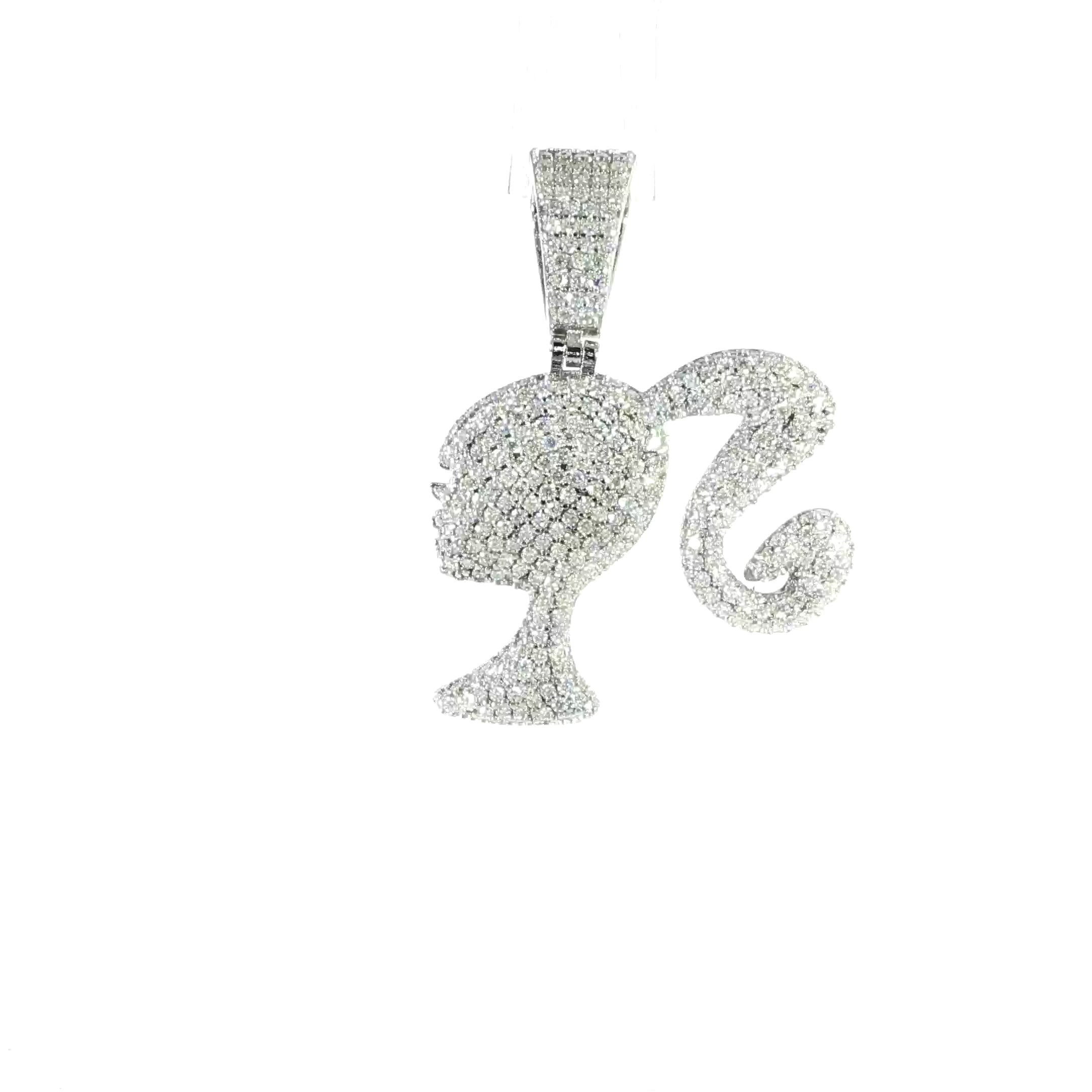 This Barbie Pendant, crafted from 925 Sterling Silver, radiates elegance and charm. Featuring 1.53 carats of VVS-D Moissanite stones, it offers a luxurious sparkle while maintaining a refined and lightweight design. At 1.0 inch in length and weighing an estimated 8.34 grams (may vary slightly), this pendant makes a stunning addition to any collection.