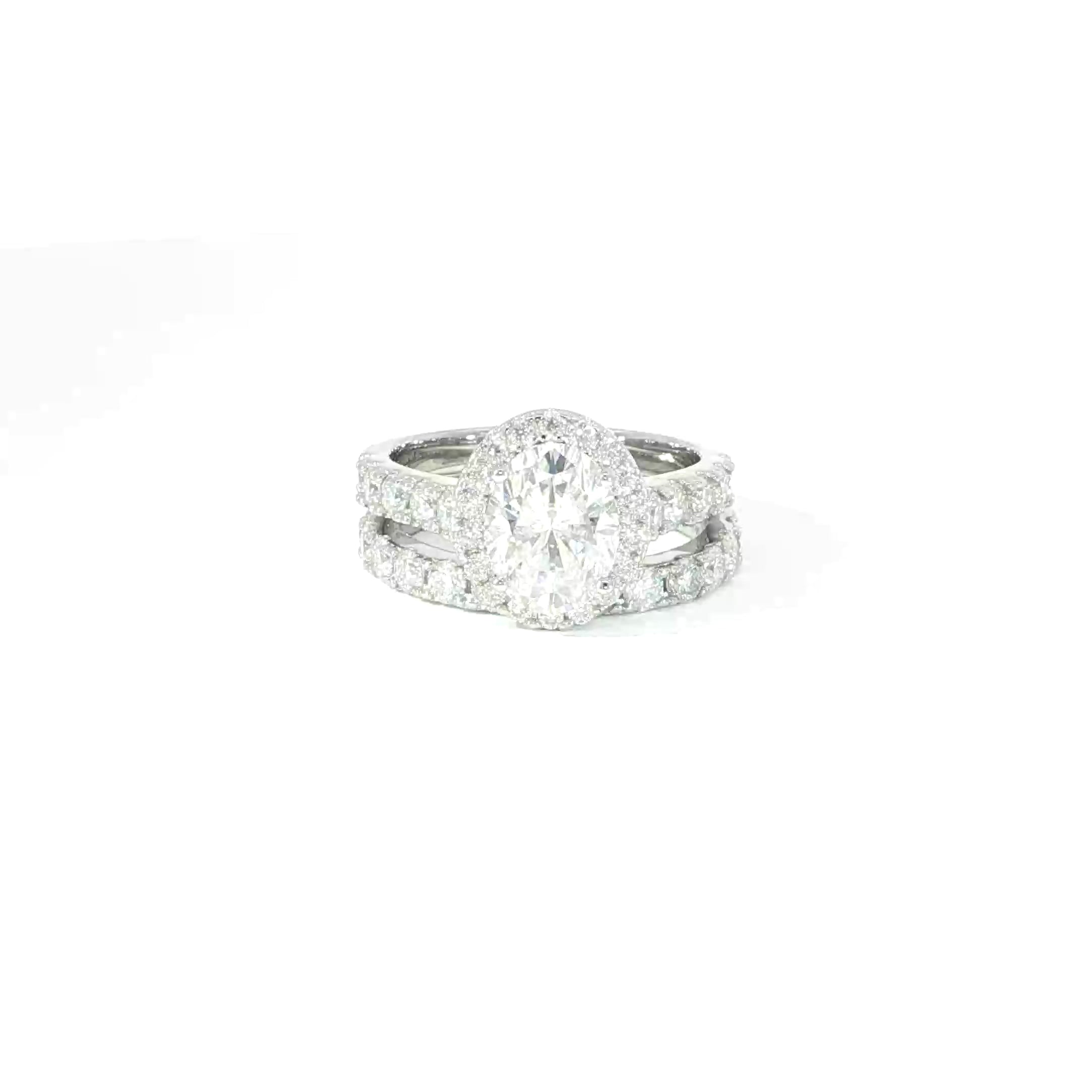 - Stone: Oval-Cut VVS Moissanite