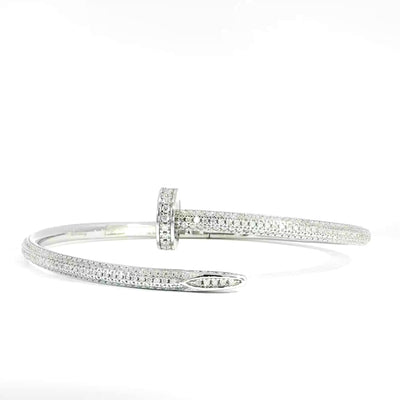Sterling Silver Nail-Shaped Bangle Bracelet with VVS Moissanite Stones