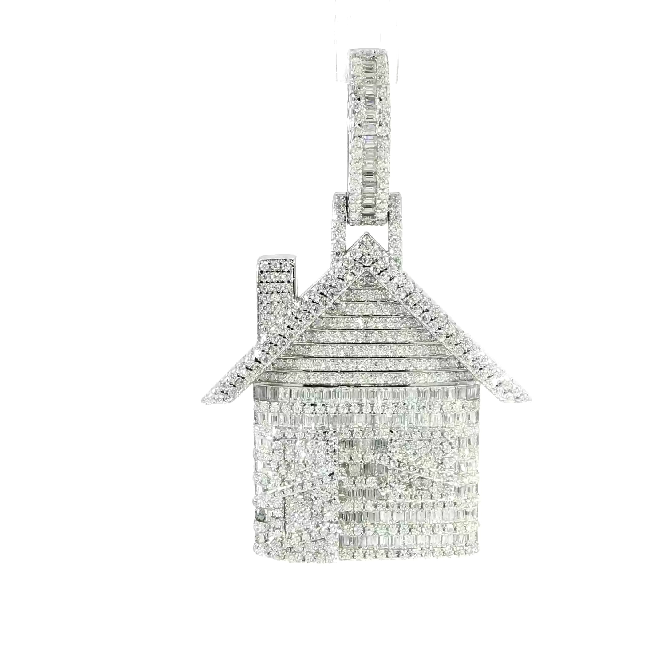 • Design: Detailed house shape, fully pave & baguette set with moissanite