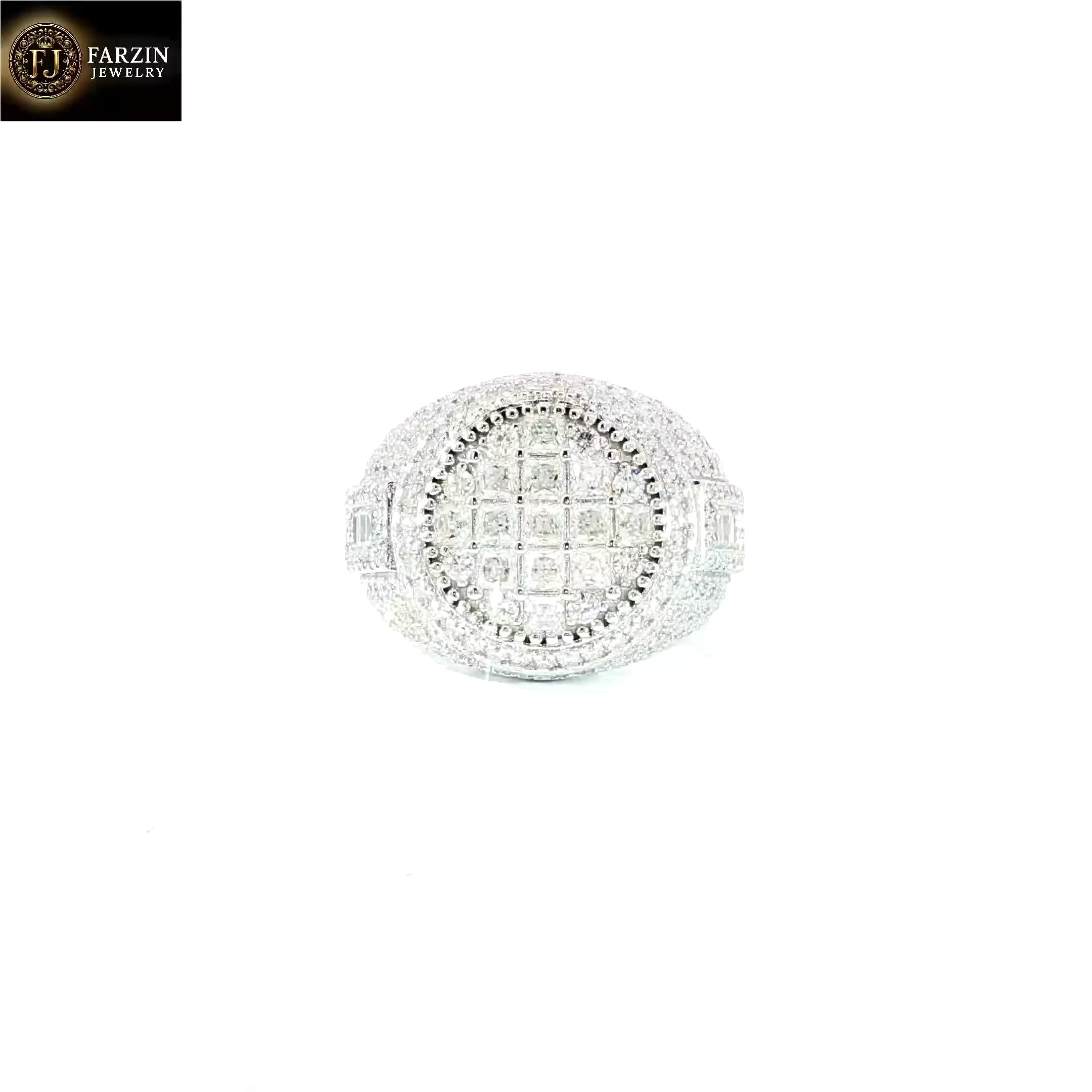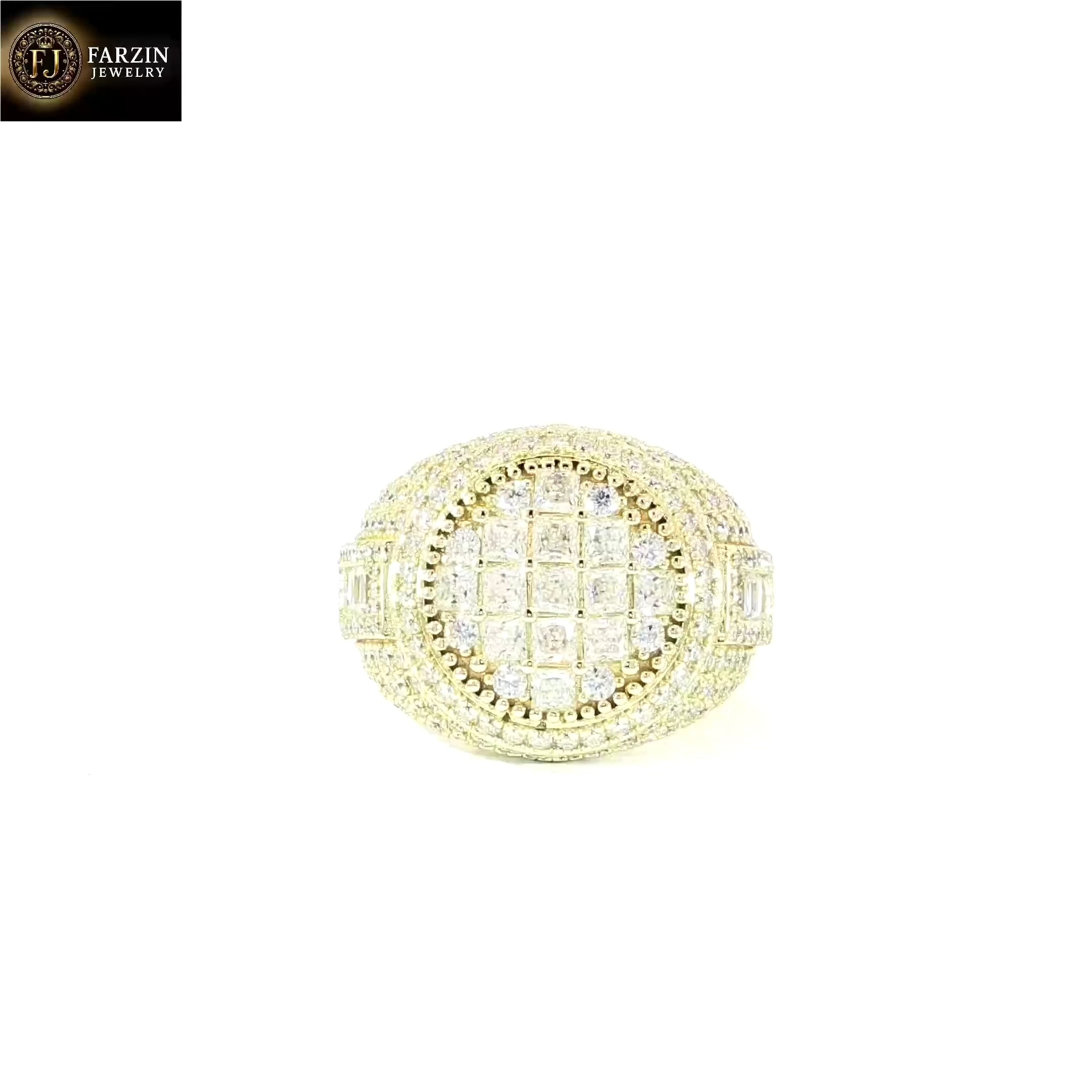 This bold 925 sterling silver men's ring showcases an intricate design featuring 5.90 carats of premium VVS moissanite stones, ensuring maximum brilliance and style. Available in two luxurious finishes: yellow gold color and silver color, this ring weighs approximately 15.87 grams (may vary slightly). Its striking design and premium craftsmanship make it a perfect statement piece for any occasion.