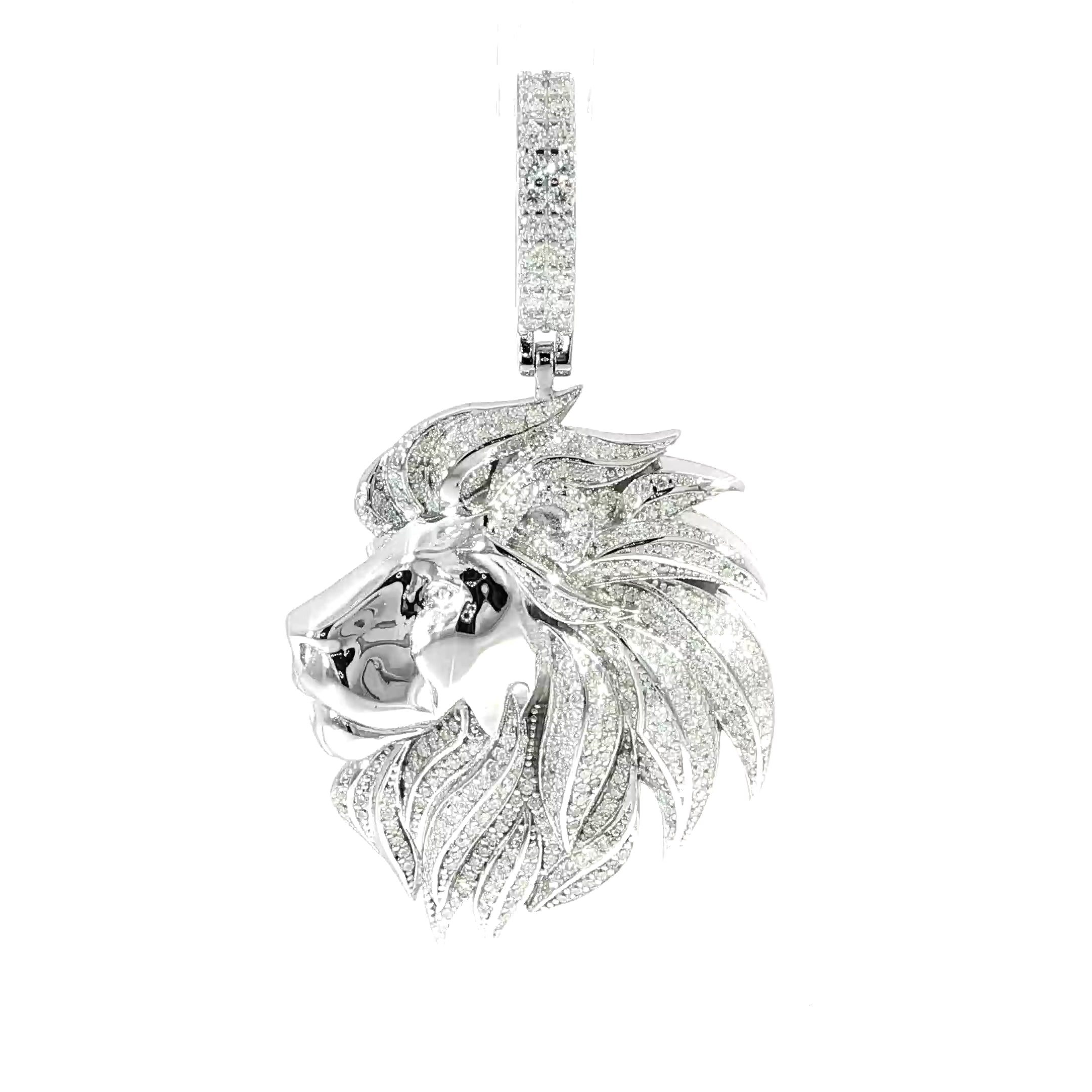 Sterling Silver Lion Head Moissanite Pendant ā 2.26ctw