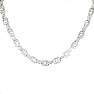 Sterling Silver Solid Chain with VVS Moissanite Stones - 10mm Wide