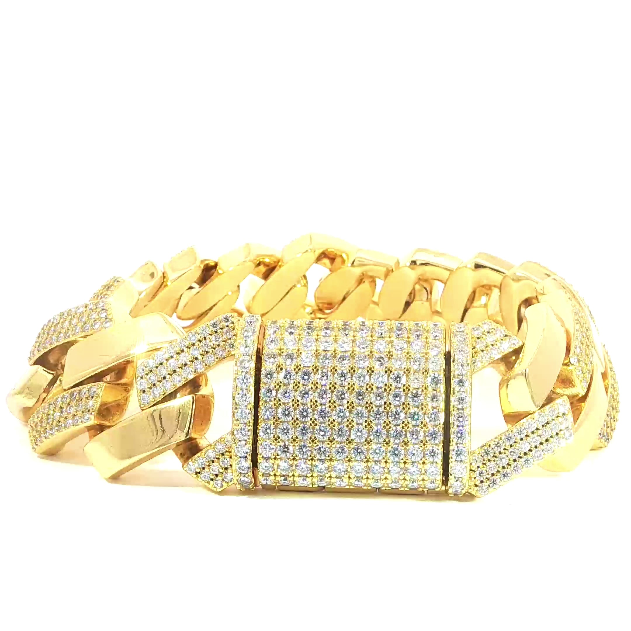 Sterling Silver Solid Miami Cuban Bracelet - 22mm, 10.9CT VVS Moissanite,